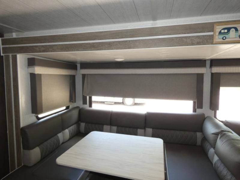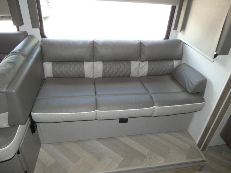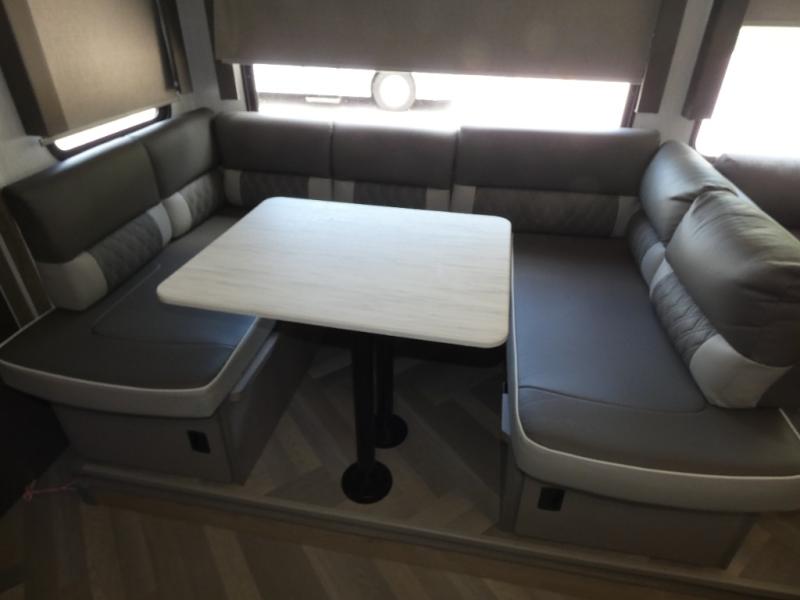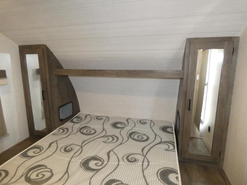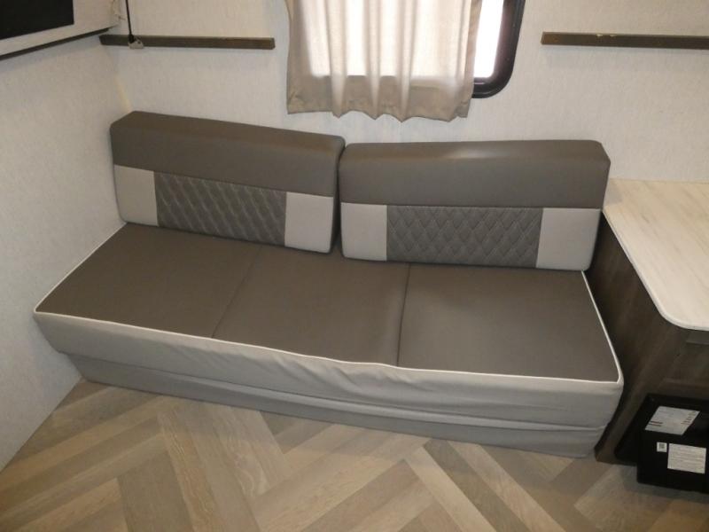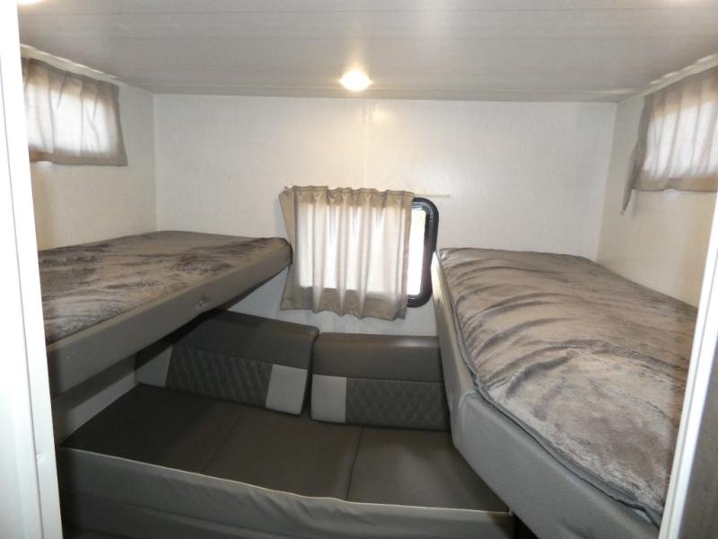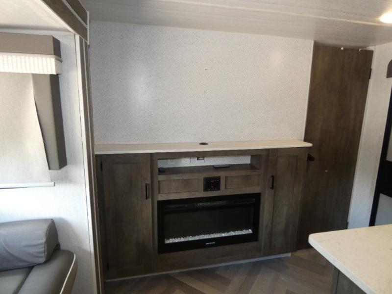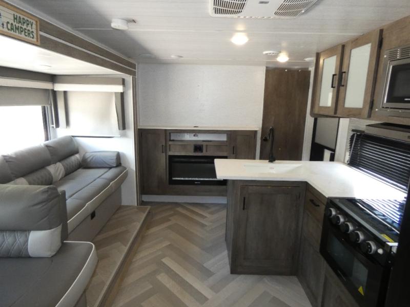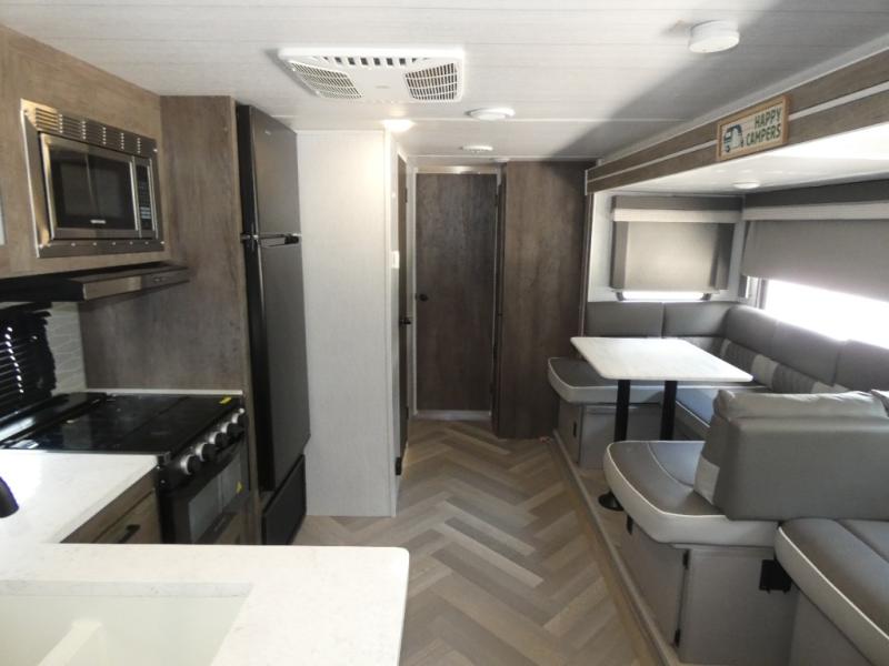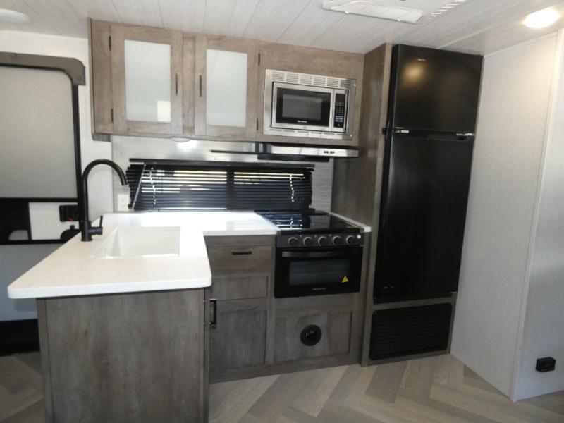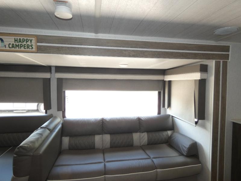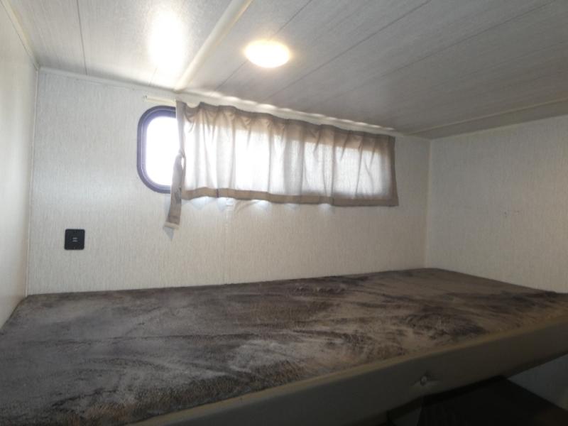 This travel trailer is new to the lineup and offers a large amount of versatility! The rear private bunkhouse has two 30" x 74" Versa-bunks and a Versa- queen bed so that more can join in on the camping fun. Start each morning feeling clean and fresh after showering in the walk-in shower with fiberglass surround then head to the front private bedroom to change. The kitchen has an oversized 11 cu. ft. refrigerator to keep your eggs fresh, a three burner cooktop to fry them up, and a U-shaped dinette to enjoy them at.