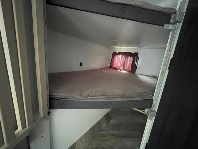 Start camping the right way in this travel trailer! It features a front Murphy bed that has a 60" x 74" queen bed to sleep on and a sofa with storage access to sit on during the day. The corner set of 48" x 72" double bunk beds come with storage to keep things out of the way and are conveniently next to the rear corner bathroom which has a 36" x 24" shower to freshen up in each morning. You can prepare your best home cooked meals indoors with the two burner cooktop or head to the outside LP griddle to fry up some burgers while breathing in some fresh air. Enjoy your meals, play card games, and even sleep at the U-shaped dinette slide. You will also appreciate the outside shower and the exterior front oversized door for storage access.