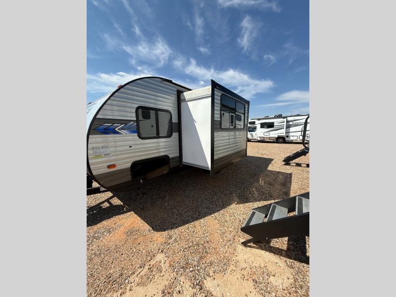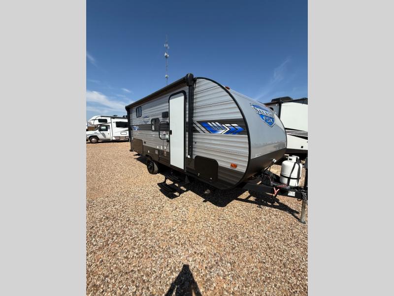 Each one of these Forest River Salem FSX travel trailer and travel trailer toy haulers are fully featured, light weight, and easy to tow making them perfect for a first time or seasoned camper! They are built with a SuperFlex one piece roof, a powder coated I-beam frame, and an aerodynamic front radius profile for better wind resistance. With the largest in class opening panoramic windows, you will have a great view of your beautiful surroundings and enjoy fresh breezes of air throughout. A diamond plate front rock guard will protect your unit from road debris and the Tuffcoat scratch resistant exterior paint helps to keep any dings or bumps from scratching it. The Best-In-Class package comes with an AccessiBelly enclosed underbelly to keep your units vitals safe through every season, a XL folding grab assist handle to safely enter and exit, and an upgraded appliance package to prepare your best meals. Come find the model that best fits your needs today!
