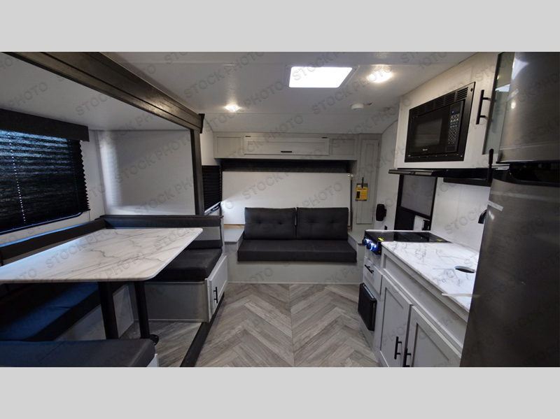 Start camping the right way in this travel trailer! It features a front Murphy bed that has a 60" x 74" queen bed to sleep on and a sofa with storage access to sit on during the day. The corner set of 48" x 72" double bunk beds come with storage to keep things out of the way and are conveniently next to the rear corner bathroom which has a 36" x 24" shower to freshen up in each morning. You can prepare your best home cooked meals indoors with the two burner cooktop or head to the outside LP griddle to fry up some burgers while breathing in some fresh air. Enjoy your meals, play card games, and even sleep at the U-shaped dinette slide. You will also appreciate the outside shower and the exterior front oversized door for storage access.