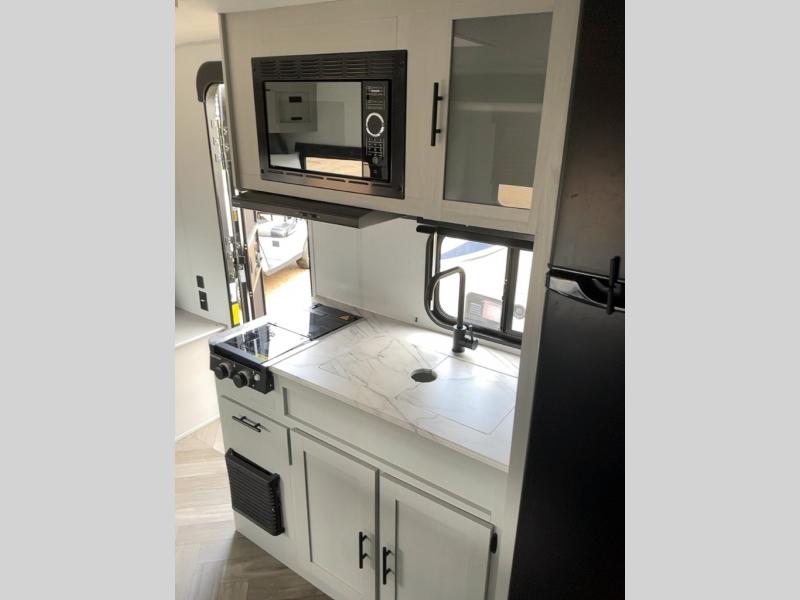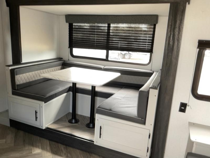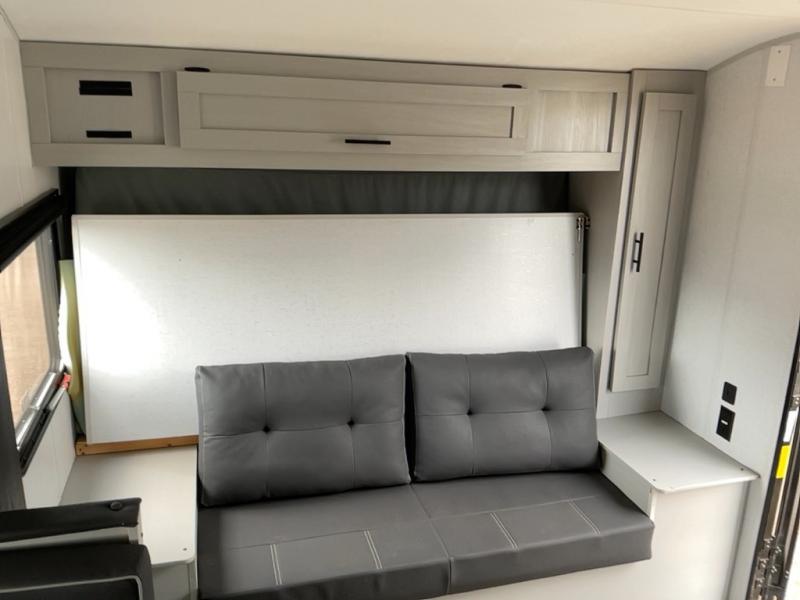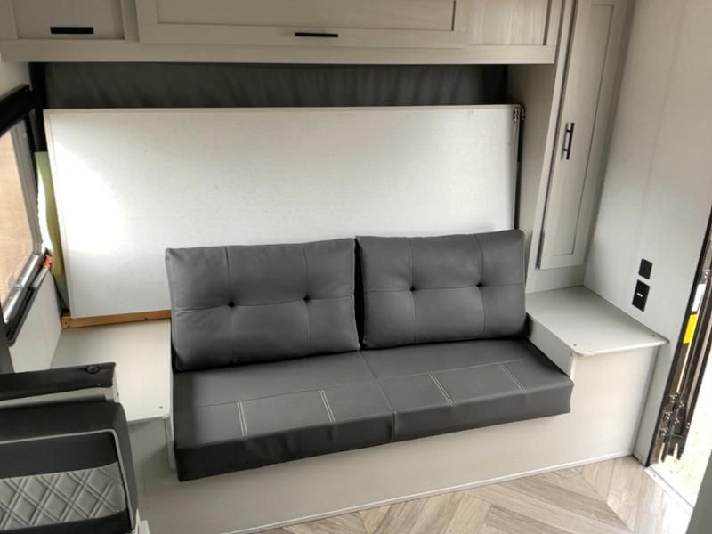Start camping the right way in this travel trailer! It features a front Murphy bed that has a 60" x 74" queen bed to sleep on and a sofa with storage access to sit on during the day. The corner set of 48" x 72" double bunk beds come with storage to keep things out of the way and are conveniently next to the rear corner bathroom which has a 36" x 24" shower to freshen up in each morning. You can prepare your best home cooked meals indoors with the two burner cooktop or head to the outside LP griddle to fry up some burgers while breathing in some fresh air. Enjoy your meals, play card games, and even sleep at the U-shaped dinette slide. You will also appreciate the outside shower and the exterior front oversized door for storage access.