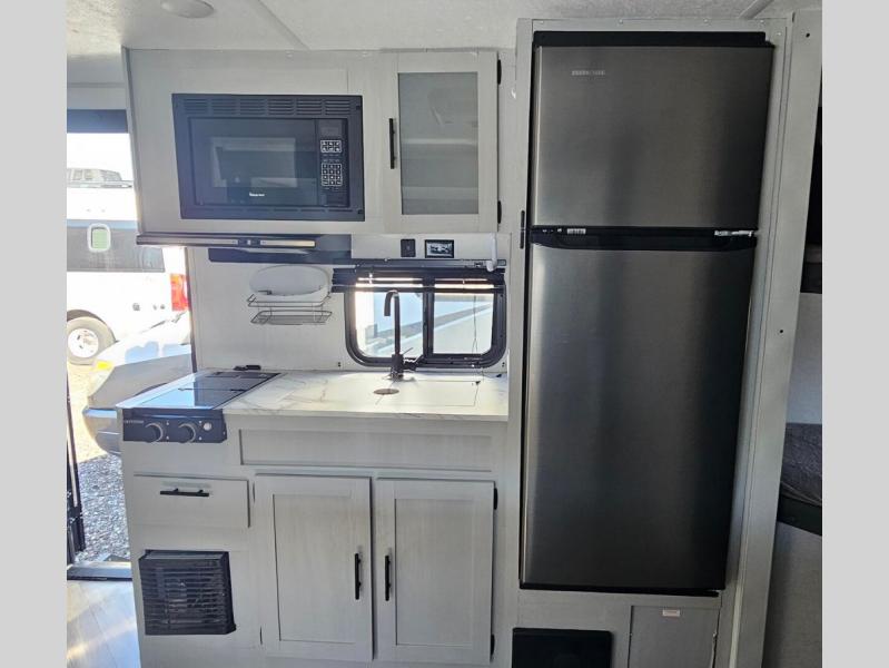 Each one of these Forest River Salem FSX travel trailer and travel trailer toy haulers are fully featured, light weight, and easy to tow making them perfect for a first time or seasoned camper! They are built with a SuperFlex one piece roof, a powder coated I-beam frame, and an aerodynamic front radius profile for better wind resistance. With the largest in class opening panoramic windows, you will have a great view of your beautiful surroundings and enjoy fresh breezes of air throughout. A diamond plate front rock guard will protect your unit from road debris and the Tuffcoat scratch resistant exterior paint helps to keep any dings or bumps from scratching it. The Best-In-Class package comes with an AccessiBelly enclosed underbelly to keep your units vitals safe through every season, a XL folding grab assist handle to safely enter and exit, and an upgraded appliance package to prepare your best meals. Come find the model that best fits your needs today!