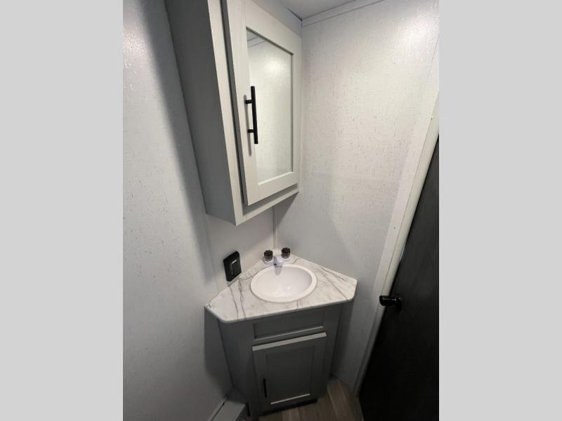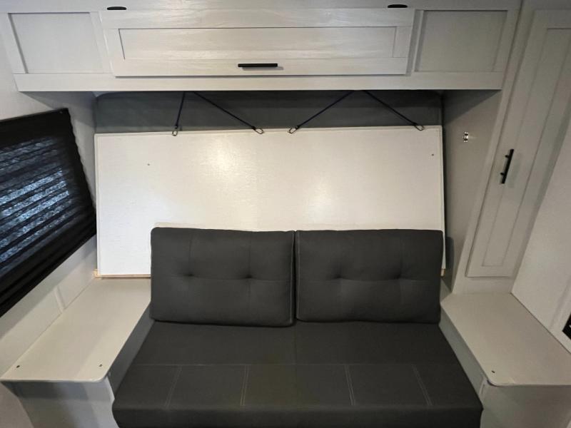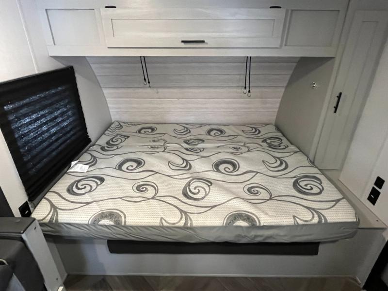 Start camping the right way in this travel trailer! It features a front Murphy bed that has a 60" x 74" queen bed to sleep on and a sofa with storage access to sit on during the day. The corner set of 48" x 72" double bunk beds come with storage to keep things out of the way and are conveniently next to the rear corner bathroom which has a 36" x 24" shower to freshen up in each morning. You can prepare your best home cooked meals indoors with the two burner cooktop or head to the outside LP griddle to fry up some burgers while breathing in some fresh air. Enjoy your meals, play card games, and even sleep at the U-shaped dinette slide. You will also appreciate the outside shower and the exterior front oversized door for storage access.