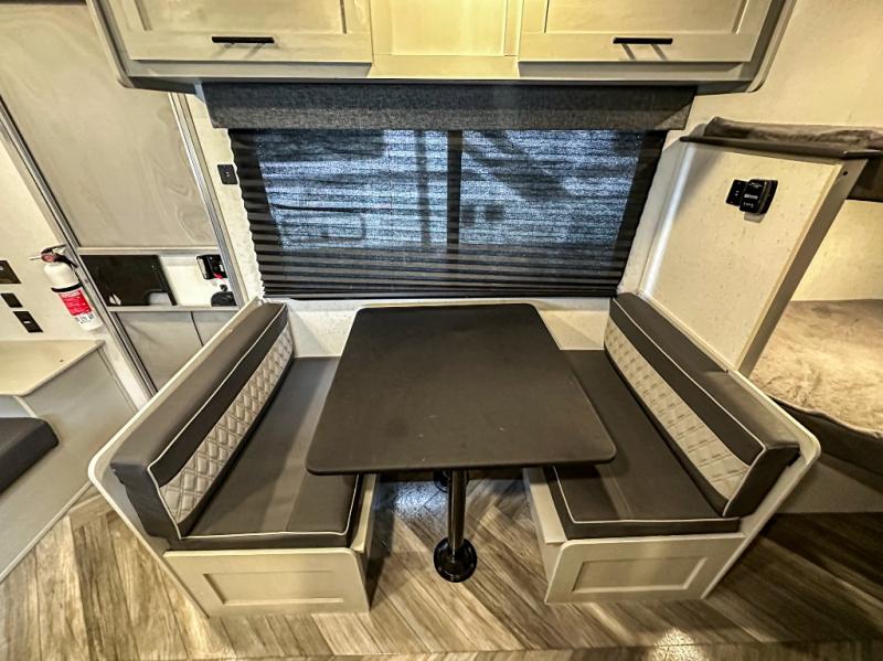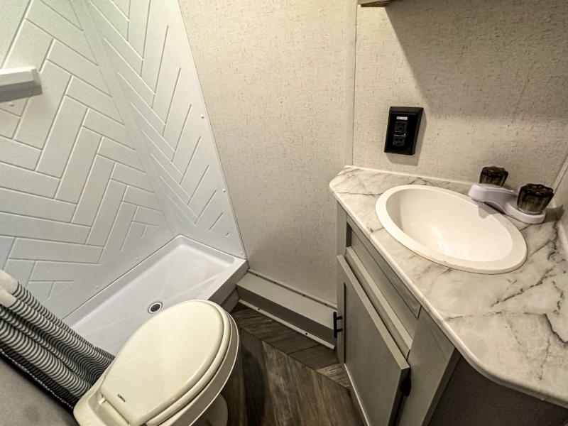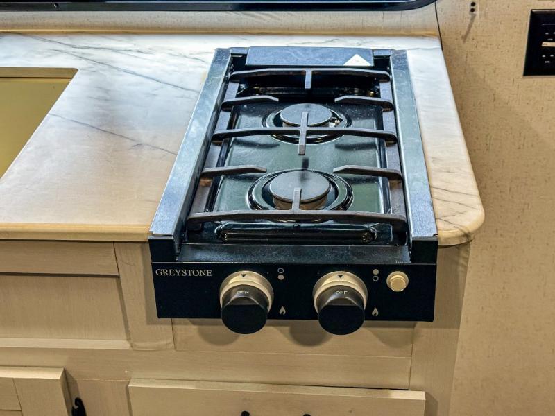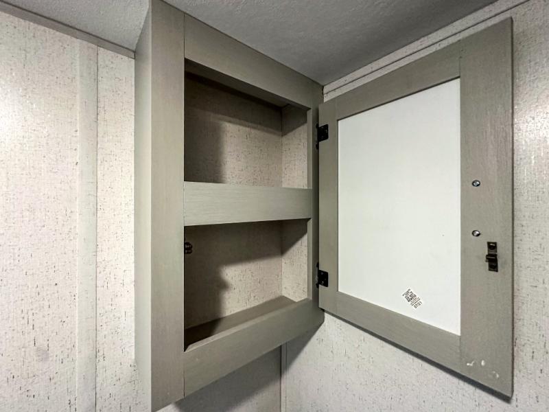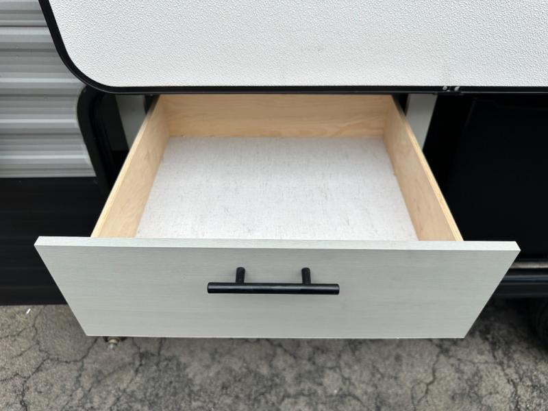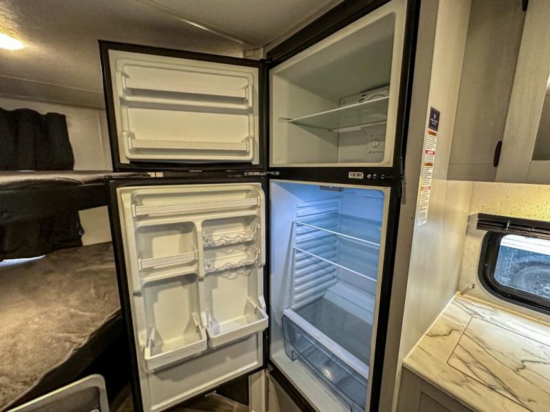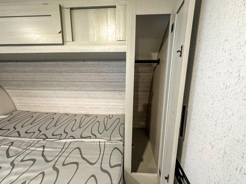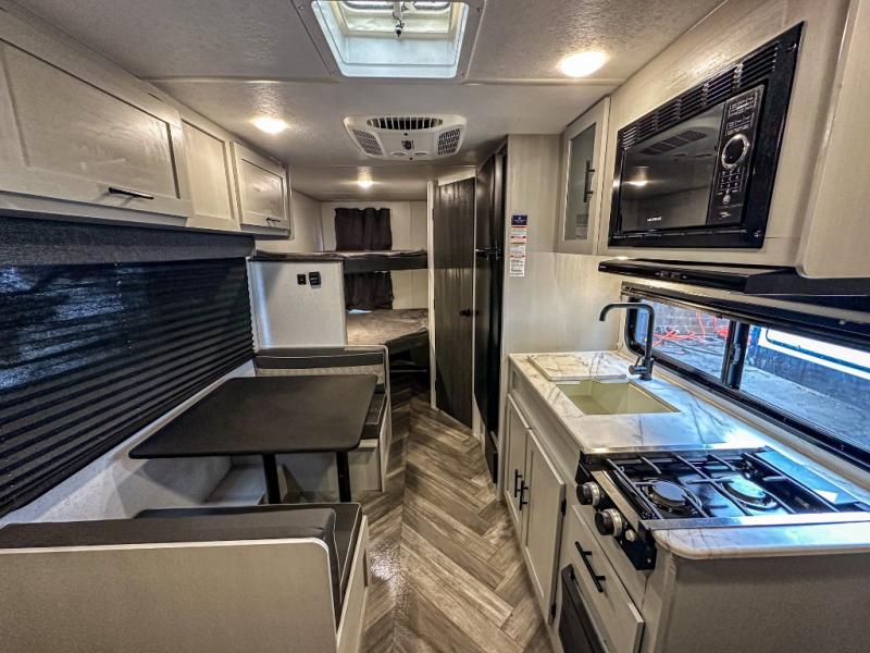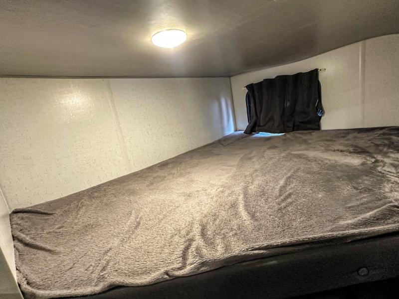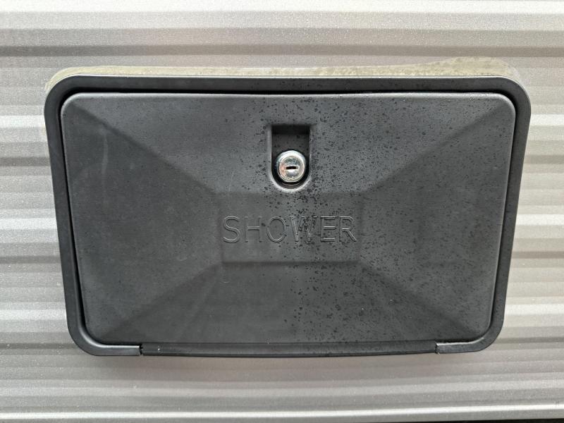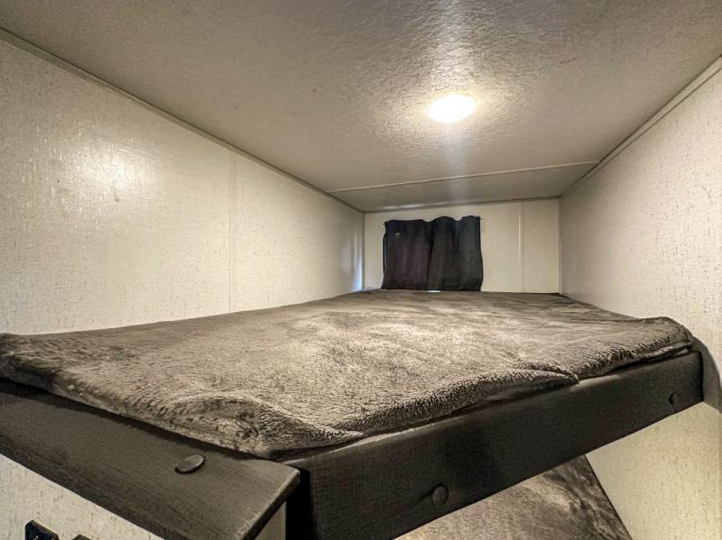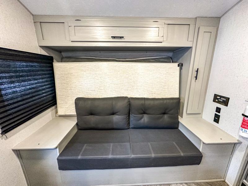 No need will go unmet with this travel trailer! It features a front Murphy bed that has a 60" x 74" queen bed to sleep on and a sofa with storage access to sit on during the day. The corner set of 48" x 72" double bunk beds come with storage to keep things out of the way and are conveniently next to the rear corner bathroom which has a 36" x 24" shower to freshen up in each morning. You can prepare your best home cooked meals indoors with the two burner cooktop or head to the optional outside LP griddle to fry up some burgers while breathing in some fresh air. Enjoy your meals, play card games, and even sleep at the booth dinette. You will also appreciate the outside shower and the front exterior full pass-through storage area for all your outdoor gear.