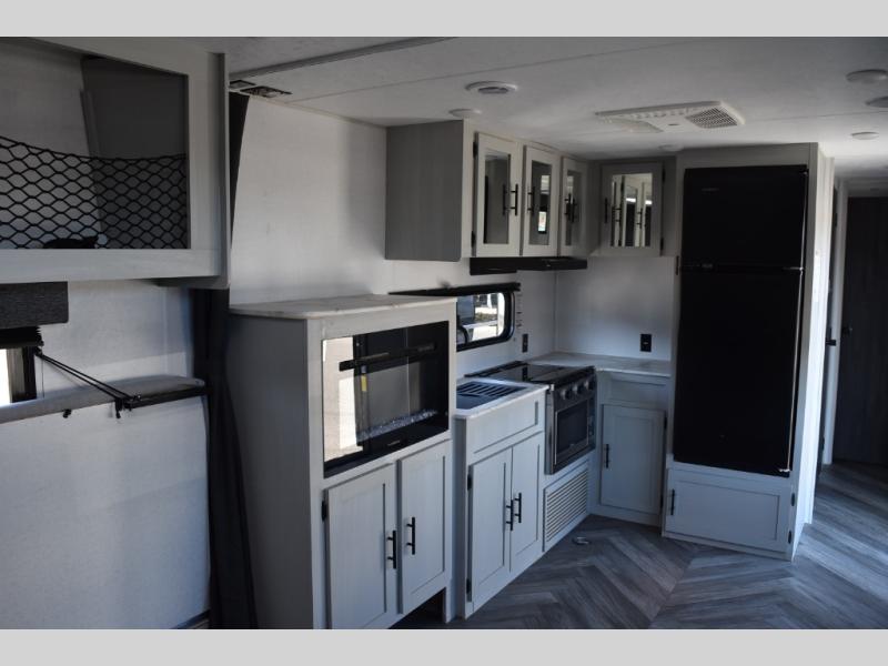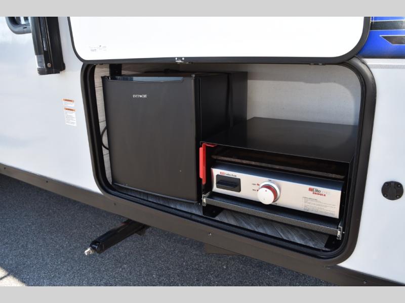 Each one of these Forest River Salem FSX travel trailer and travel trailer toy haulers are fully featured, light weight, and easy to tow making them perfect for a first time or seasoned camper! They are built with a SuperFlex one piece roof, a powder coated I-beam frame, and an aerodynamic front radius profile for better wind resistance. With the largest in class opening panoramic windows, you will have a great view of your beautiful surroundings and enjoy fresh breezes of air throughout. A diamond plate front rock guard will protect your unit from road debris and the Tuffcoat scratch resistant exterior paint helps to keep any dings or bumps from scratching it. The Best-In-Class package comes with an AccessiBelly enclosed underbelly to keep your units vitals safe through every season, a XL folding grab assist handle to safely enter and exit, and an upgraded appliance package to prepare your best meals. Come find the model that best fits your needs today!