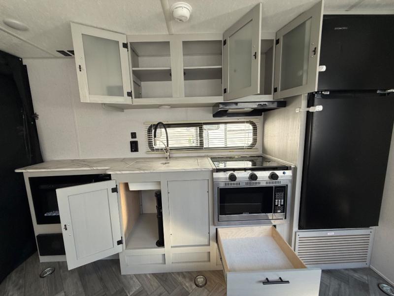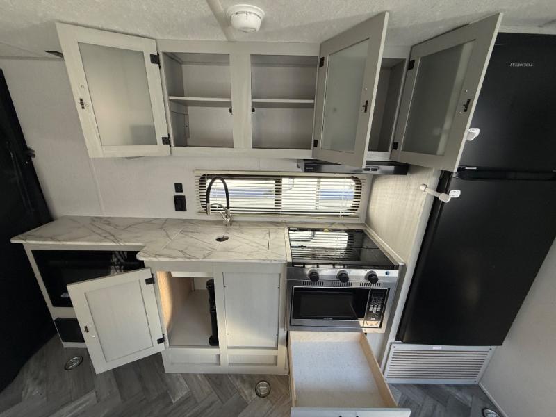 Each one of these Forest River Salem FSX travel trailer and travel trailer toy haulers are fully featured, light weight, and easy to tow making them perfect for a first time or seasoned camper! They are built with a SuperFlex one piece roof, a powder coated I-beam frame, and an aerodynamic front radius profile for better wind resistance. With the largest in class opening panoramic windows, you will have a great view of your beautiful surroundings and enjoy fresh breezes of air throughout. A diamond plate front rock guard will protect your unit from road debris and the Tuffcoat scratch resistant exterior paint helps to keep any dings or bumps from scratching it. The Best-In-Class package comes with an AccessiBelly enclosed underbelly to keep your units vitals safe through every season, a XL folding grab assist handle to safely enter and exit, and an upgraded appliance package to prepare your best meals. Come find the model that best fits your needs today!