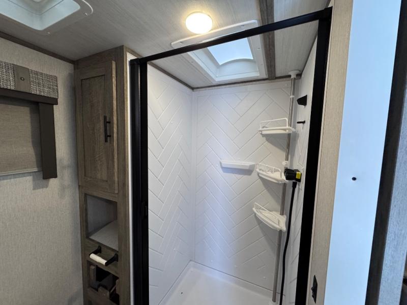 You will experience better gas mileage and a smoother ride with any one of these Forest River Salem Hemisphere Hyper-Lyte travel trailers! The stunning interiors include Herringbone designer's choice congoleum flooring for an easy clean up, rich wood tones with the Hudson wood agreeable grain cabinetry, and yacht trim ceiling finishes. With a high efficiency A/C cooling system, you can be sure to stay cool even on the hottest summer day. The mandatory Upgraded Options package includes an outside shower to rinse the mud off before entering, a central switch center, and an ivory performance colored exterior fiberglass with smoked quartz metallic accents to turn heads while at the campsite!