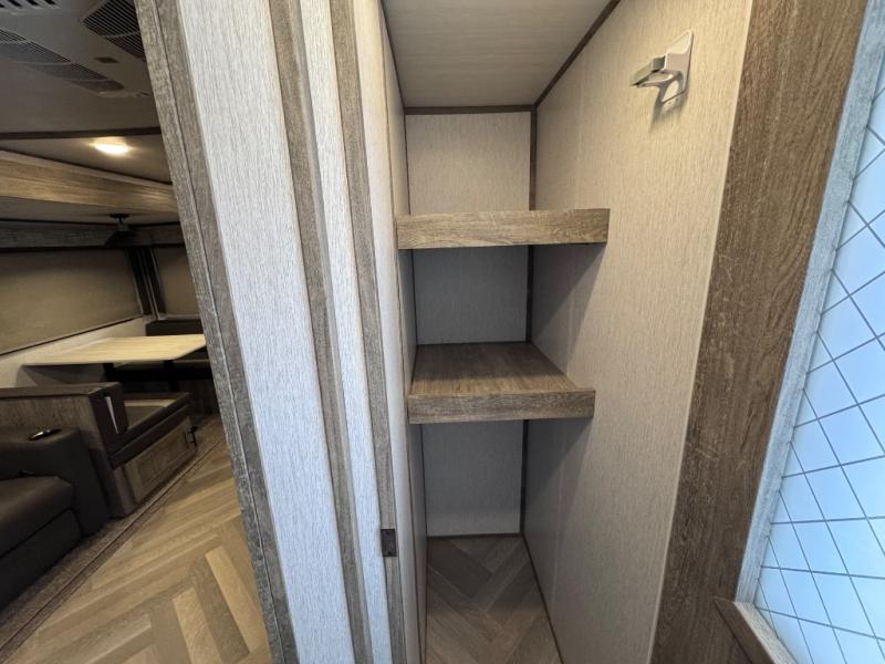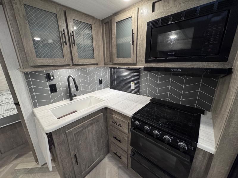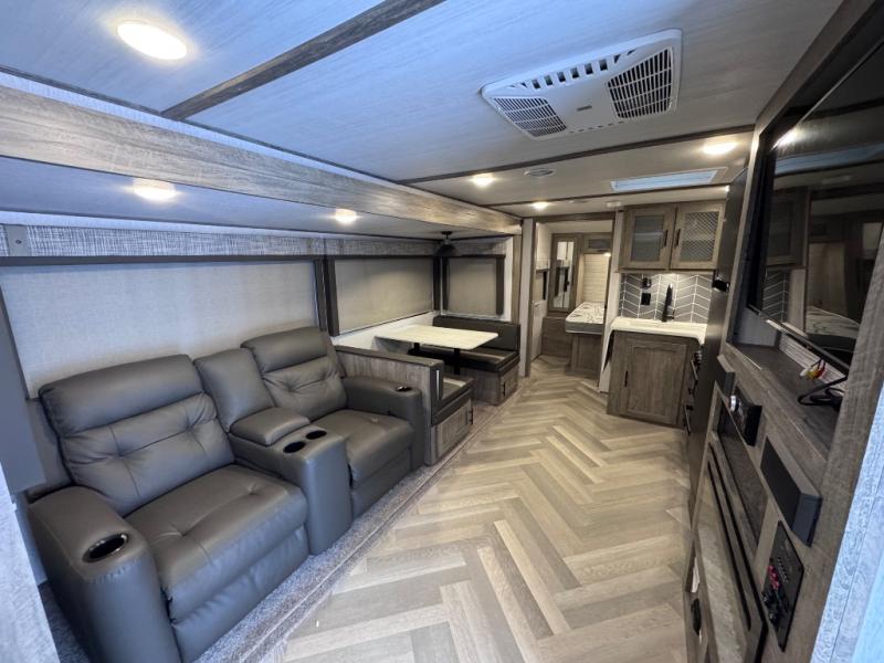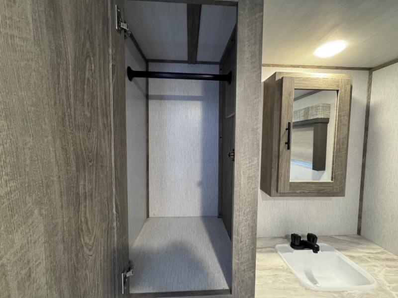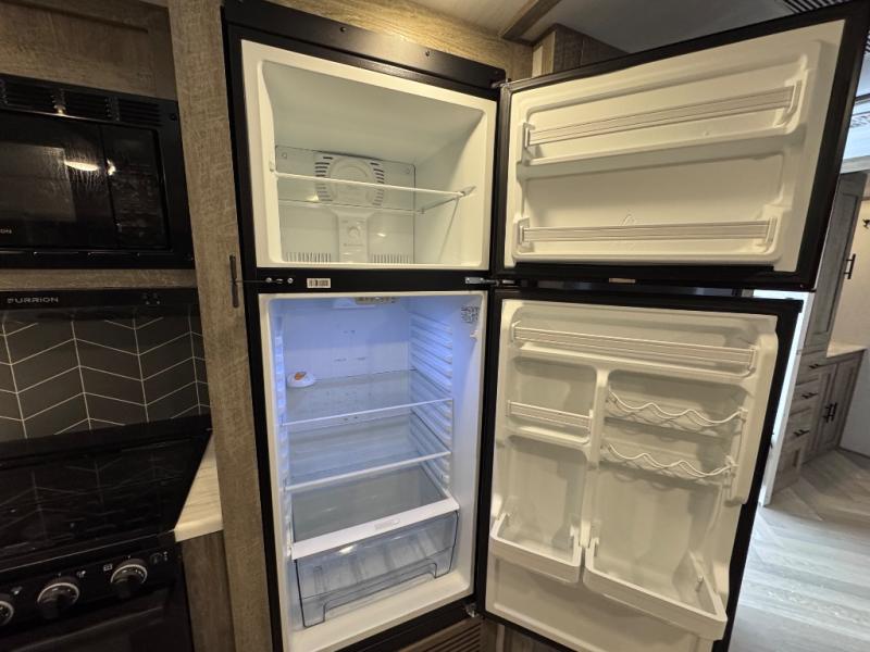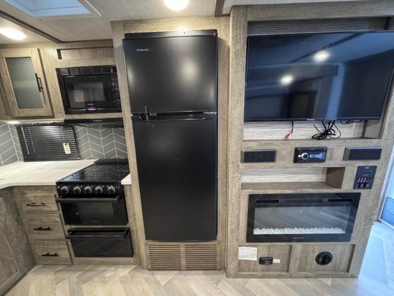 Once you step inside this spacious Salem Hemisphere Hyper-Lyte travel trailer, you'll want to take it out every other weekend for fun with your friends or family! The large slide out opens up the living and kitchen area and allows everyone to move around freely. The chef of the family can prepare dinner on the three-burner range, and they'll love having a walk-in pantry to store all the canned goods. After a day at the lake, get cleaned up in the full rear bath before heading to the living area to relax on the theater seating while you watch a show by the fireplace. This trailer includes a front private bedroom with an RV queen bed and space to walk around the bed. You can easily store all your hiking gear in the Texas sized pass-through storage, and cold drinks can go in the outdoor fridge!