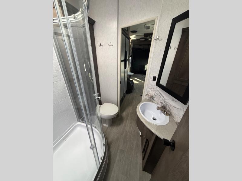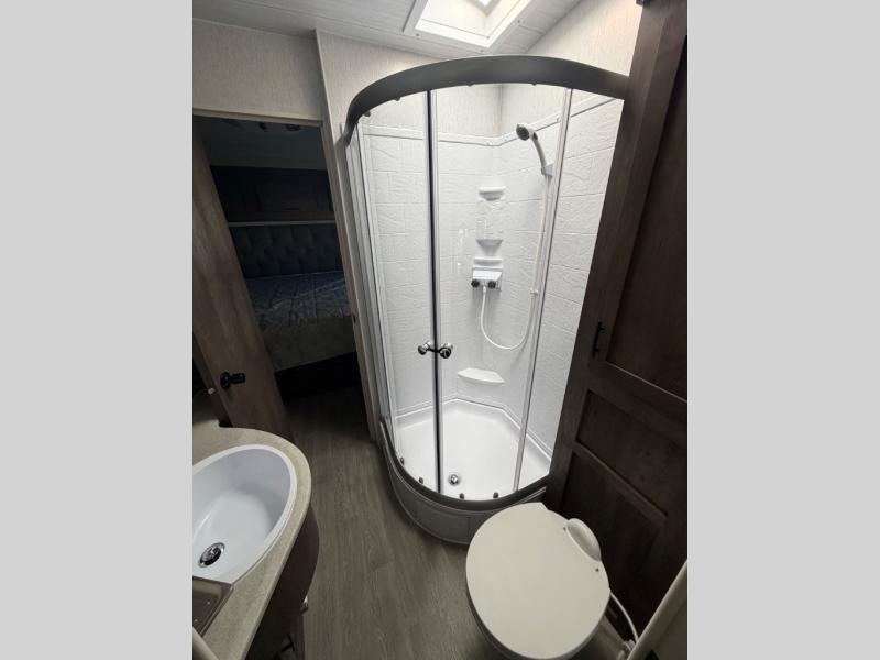 Each Sandstorm toy hauler fifth wheel and travel trailer by Forest River features a 102" wide-body construction to bring along four-wheelers, dirt bikes, or kayaks! You will find convenient amenities, such as 220 watts of solar power and a regulator with power boost, a 35 gallon fuel station, an outside shower to wash off your gear, and more. There is also a power awning with LED lights outdoors to create an outdoor living space, plus heated and enclosed tanks to camp all year long. The interior includes LED accent lighting, black night shades throughout, and a glass shower to name a few comforts. And don't overlook the available options that can added to customize your toy hauler just the way you like it!
