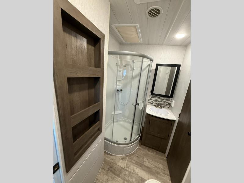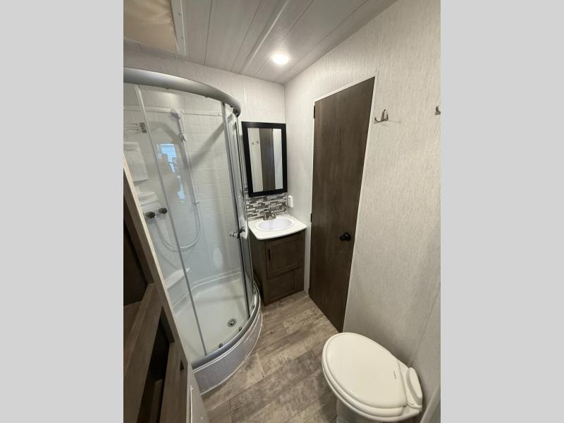Each Forest River Shockwave DX Series and MX Series travel trailer toy hauler includes a wide body construction, super lube axles, plus an outside shower so you can wash off your riding boots. Inside, you'll enjoy the black chef's high-rise spring faucet make clean-up a breeze, and the 13,500 BTU A/C will keep you cool on those hot summer months. Each model also includes a drive on wheel well on the doorside, a 35 gallon fuel station, plus LED marker and clearance lights to make parking your trailer easier than ever.