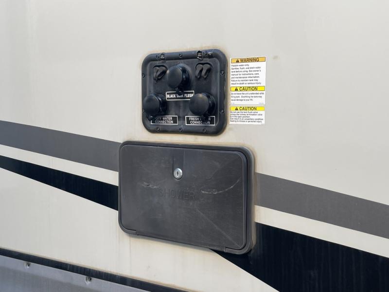 No matter where your destination is, you will truly love this unit. The front kitchen features ample counter space to prep meals, and the kitchen island includes pendant lights for a more luxurious look. Your crew can relax on the theater seating, the hide-a-bed sofa, or the free-standing dinette while dinner is being made, and you will stay cool with the breeze from the ceiling fan. The fireplace and entertainment center will make it feel more like home, along with the carpet within the slide out. Cleaning up each day will be easy in the full bath that includes a walk-in shower and convenient storage for your necessities. You will be excited to head to bed each night since this model includes a spacious rear bedroom with a large wardrobe, a dresser, plus a slide out king bed. There is even a space to add an optional washer and dryer if you choose!