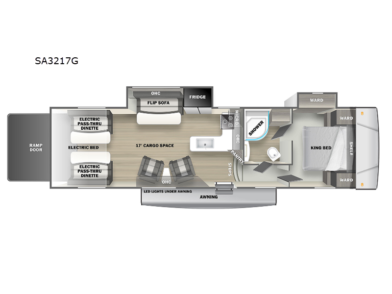 | Awning Info | 18' Electric w/Adjustable Legs and LED Lights |