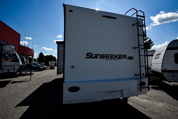 This Sunseeker LE Class C gas motorhome will allow you to travel to other states with your favorite people beside you! You can take a moment to enjoy a fresh cup of coffee in the morning while sitting at the booth dinette or on the sofa, or you can spend a little extra time creating a hearty breakfast in the kitchen on the recessed three-burner range. The 10.7-cubic foot refrigerator will store your cheese and milk, and the convection microwave will heat up leftovers with ease. The separated bathroom leads into the rear bedroom where you will find an RV queen bed with wardrobes on either side, and you can also head outside to enjoy the 15' 6" electric awning with LED lights before bed.