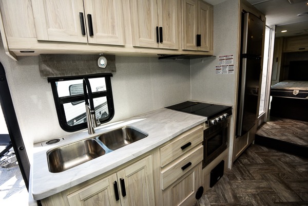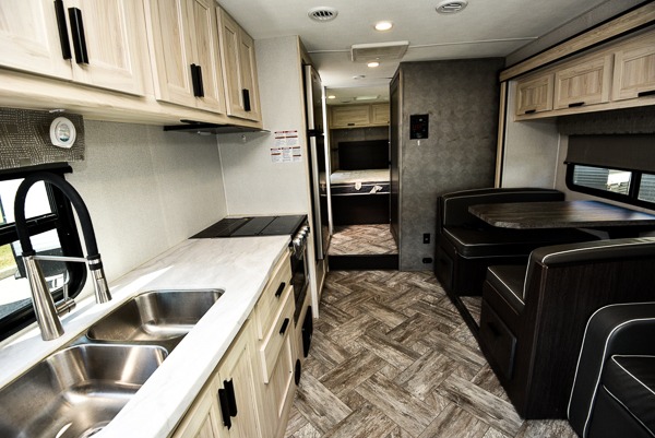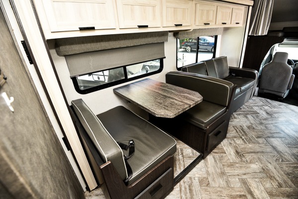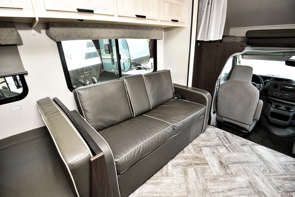 Each Forest River Sunseeker LE Class C gas motorhome comes with the LE Premier Package for your benefit! This package includes great features like backup/sideview cameras with rearview mirror monitor, a fiberglass front cap, an in-dash premium sound system with Bluetooth, a Winegard Air 360+ antenna with preparation for Gateway 4G Wi-Fi, toppers for the slide outs, and a 15,000 BTU ceiling-ducted, ultra-quiet roof air with heat pump. All of these premium features rest on a Superlite composite substrate, 2"-thick gel-coat sidewalls with lightweight composite waterproof material, block-foam insulation, and a fiberglass roof. There is a satellite/cable connection, a 30,000 BTU furnace, a Maxx Air multi-speed power fan, and black-out roller shades.