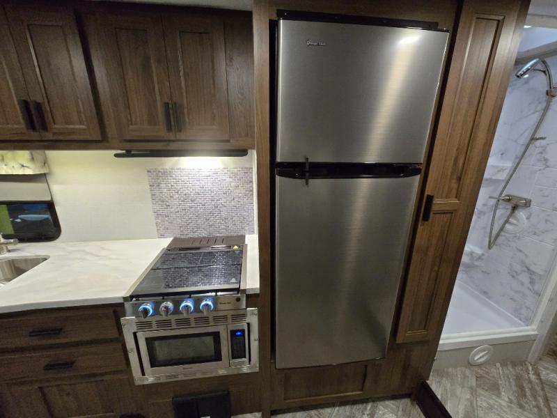 This Sunseeker LE Class C gas motorhome will allow you to travel to other states with your favorite people beside you! You can take a moment to enjoy a fresh cup of coffee in the morning while sitting at the booth dinette or on the sofa, or you can spend a little extra time creating a hearty breakfast in the kitchen on the recessed three-burner range. The 10.7-cubic foot refrigerator will store your cheese and milk, and the convection microwave will heat up leftovers with ease. The separated bathroom leads into the rear bedroom where you will find an RV queen bed with wardrobes on either side, and you can also head outside to enjoy the 15' 6" electric awning with LED lights before bed.