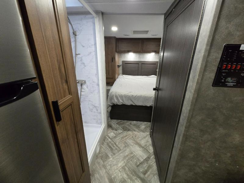 Each Forest River Sunseeker LE Class C gas motorhome comes with the LE Premier Package for your benefit! This package includes great features like backup/sideview cameras with rearview mirror monitor, a fiberglass front cap, an in-dash premium sound system with Bluetooth, a Winegard Air 360+ antenna with preparation for Gateway 4G Wi-Fi, toppers for the slide outs, and a 15,000 BTU ceiling-ducted, ultra-quiet roof air with heat pump. All of these premium features rest on a Superlite composite substrate, 2"-thick gel-coat sidewalls with lightweight composite waterproof material, block-foam insulation, and a fiberglass roof. There is a satellite/cable connection, a 30,000 BTU furnace, a Maxx Air multi-speed power fan, and black-out roller shades.