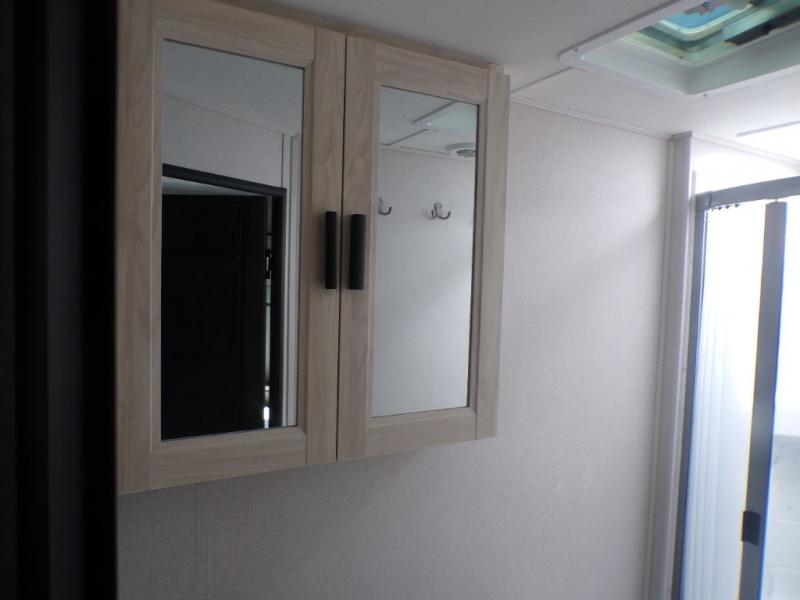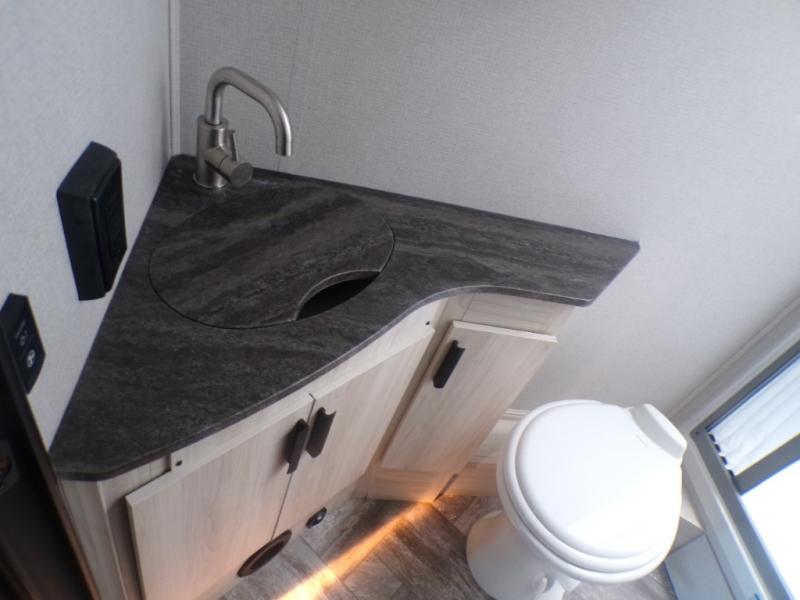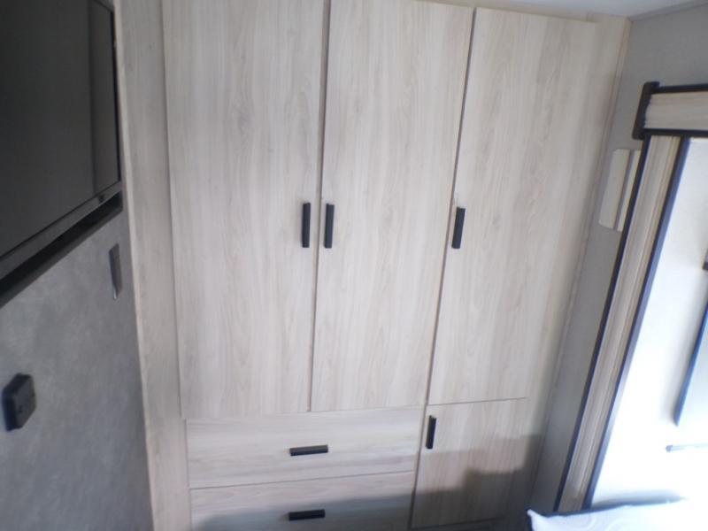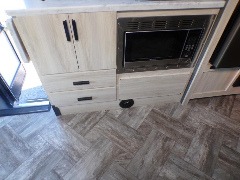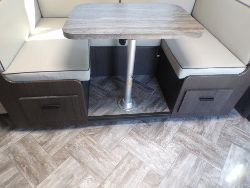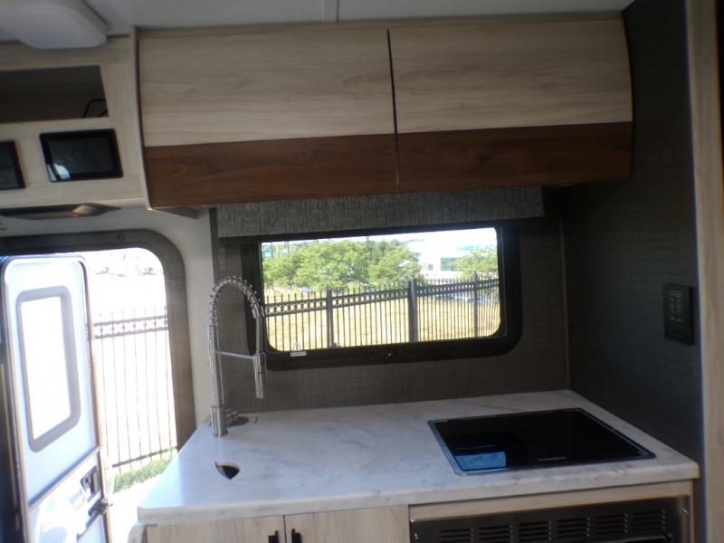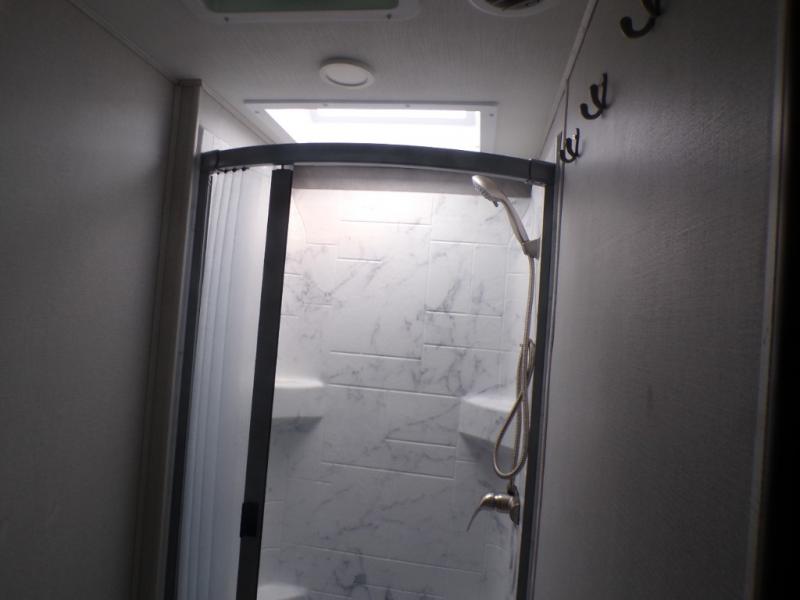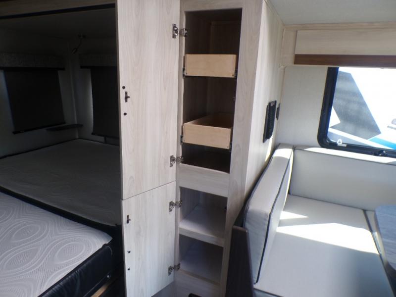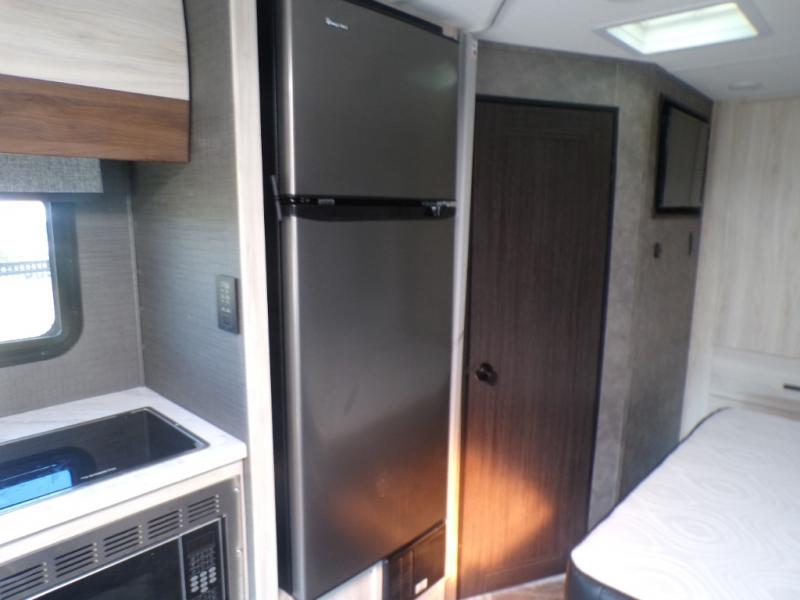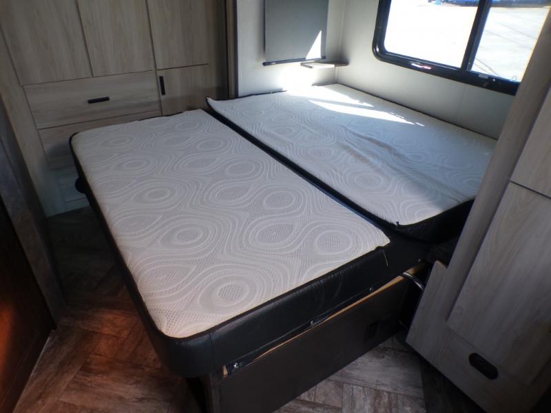Everything you need is found in this cozy motorhome for five to six people. The swivel captain's seats can become a part of the living area once you park, and your guests can gather around the U-shaped dinette within the full-wall slide. Your meals can be prepared each day on the recessed two burner range, or in the 1.3 cu. ft. stainless steel convection microwave. The flip-up galley counter will provide additional counter space, and your perishables can be stored in the 10.7 cu. ft. 12V refrigerator. The semi-private bedroom features a queen bed, a 12V TV, plus a closet above the built-in dresser. You can also choose to add an optional 12V exterior TV if you enjoy watching the big game outdoors!