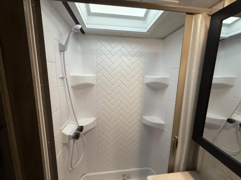 With any Surveyor Legend travel trailer by Forest River you will enjoy quality craftsmanship, convenient amenities, and at-home comforts. The Azdel composite panels provide a longer-lasting trailer, and the power tongue jack will get you back on the road in no-time. Each model includes the Surveyor Legend Package that comes standard with pleated night shades, an automotive style tinted front windshield, a multi-zone Bluetooth stereo, and more. You'll enjoy the one-touch electric awning with LED lights outdoors, plus rooftop solar prep and rear camera prep to make parking easier than ever. The inside will have you feeling right at home with Surf(x) seamless countertops, Congoleum designer carefree linoleum, residential faucets in the bath and kitchen, plus many more essentials you won't want to camp without.