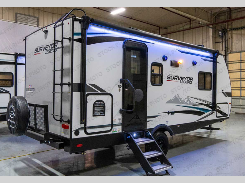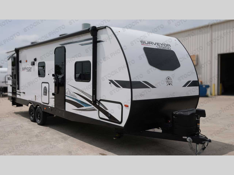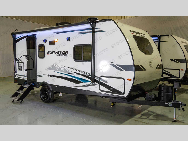With any Surveyor Legend travel trailer by Forest River you will enjoy quality craftsmanship, convenient amenities, and at-home comforts. The Azdel composite panels provide a longer-lasting trailer, and the power tongue jack will get you back on the road in no-time. Each model includes the Surveyor Legend Package that comes standard with pleated night shades, an automotive style tinted front windshield, a multi-zone Bluetooth stereo, and more. You'll enjoy the one-touch electric awning with LED lights outdoors, plus rooftop solar prep and rear camera prep to make parking easier than ever. The inside will have you feeling right at home with Surf(x) seamless countertops, Congoleum designer carefree linoleum, residential faucets in the bath and kitchen, plus many more essentials you won't want to camp without.