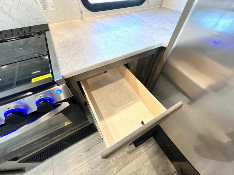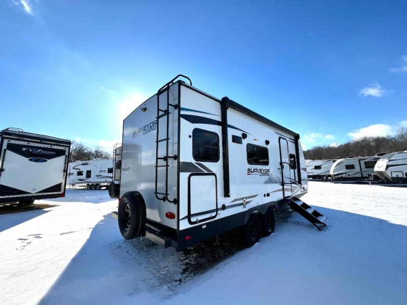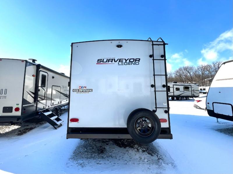 With any Surveyor Legend travel trailer by Forest River you will enjoy quality craftsmanship, convenient amenities, and at-home comforts. The Azdel composite panels provide a longer-lasting trailer, and the Lippert axles leaf spring suspension will make towing easier than ever. You will enjoy many interior comforts, such as modern frame edge cabinets, designer Shaw lino flooring, an Indura-Kleen Evergreen mattress, and EZ-access dinette storage to bring along board games, flashlights, and throw blankets. The magnetic baggage door catches allow you to easily pack up your gear, and the friction hinge entry door(s) will make coming and going smooth as ever. Each model includes a 30K BTU ducted furnace, or a 20K BTU furnace in the Sub-4's, a 15K high performance A/C, plus a fully enclosed and heated underbelly to keep you comfortable through spring, summer, fall, or winter!