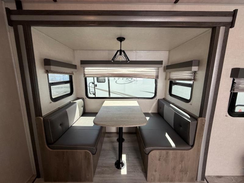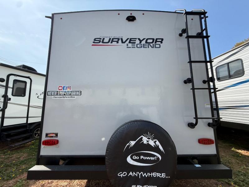 With any Surveyor Legend travel trailer by Forest River you will enjoy quality craftsmanship, convenient amenities, and at-home comforts. The Azdel composite panels provide a longer-lasting trailer, and the Lippert axles leaf spring suspension will make towing easier than ever. You will enjoy many interior comforts, such as modern frame edge cabinets, designer Shaw lino flooring, an Indura-Kleen Evergreen mattress, and EZ-access dinette storage to bring along board games, flashlights, and throw blankets. The magnetic baggage door catches allow you to easily pack up your gear, and the friction hinge entry door(s) will make coming and going smooth as ever. Each model includes a 30K BTU ducted furnace, or a 20K BTU furnace in the Sub-4's, a 15K high performance A/C, plus a fully enclosed and heated underbelly to keep you comfortable through spring, summer, fall, or winter!