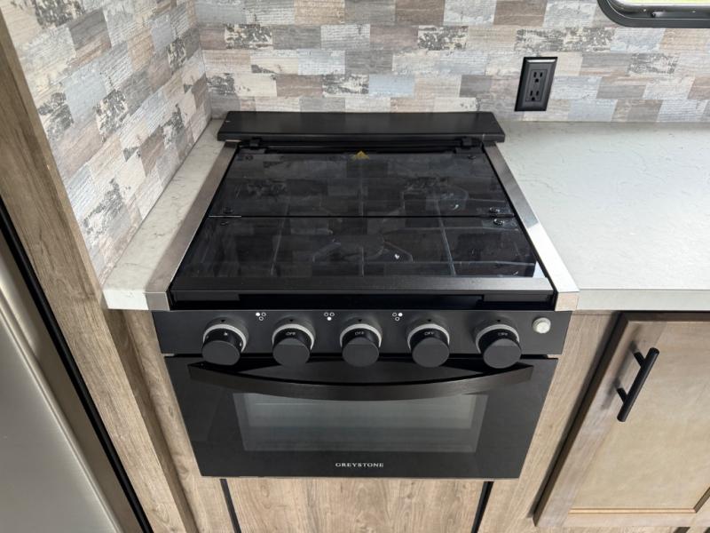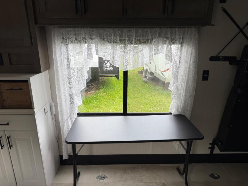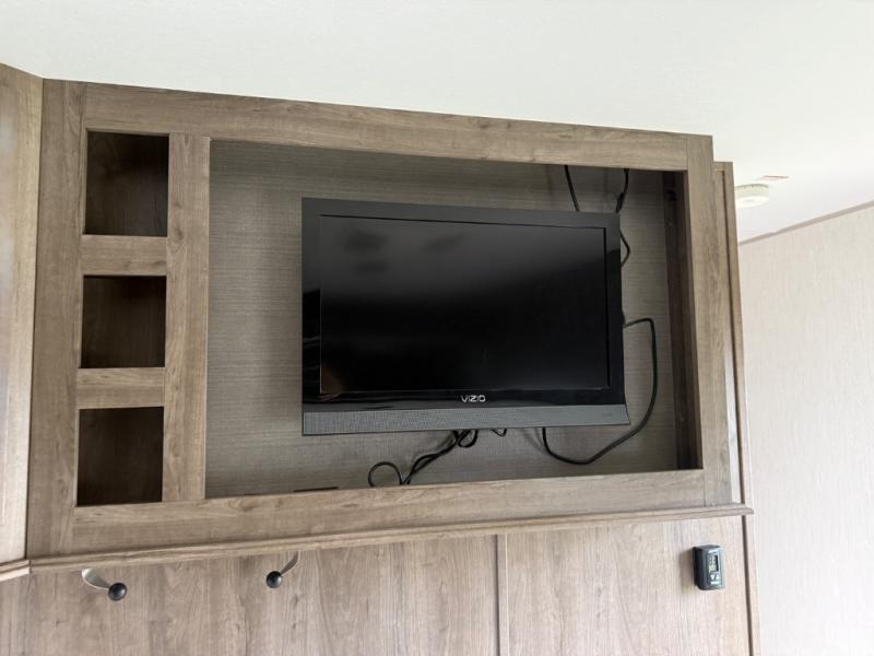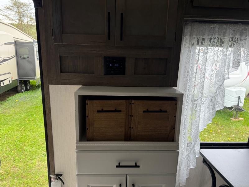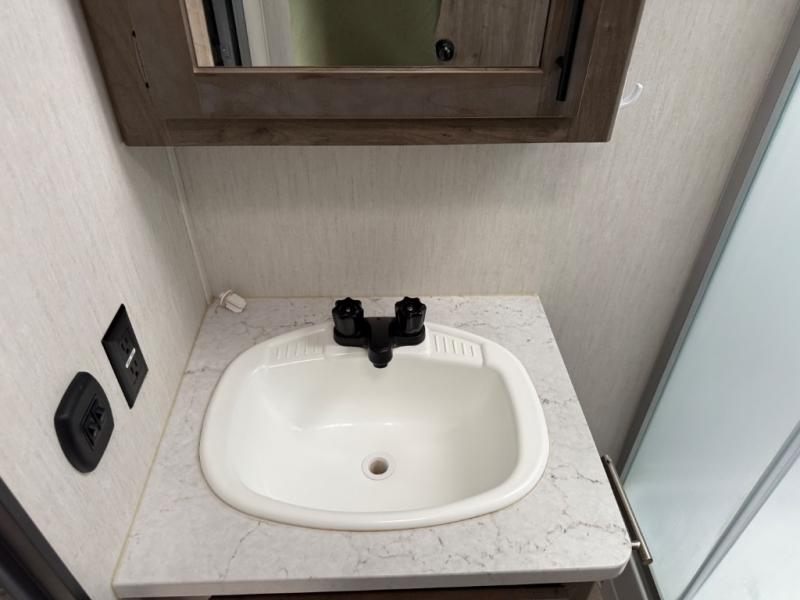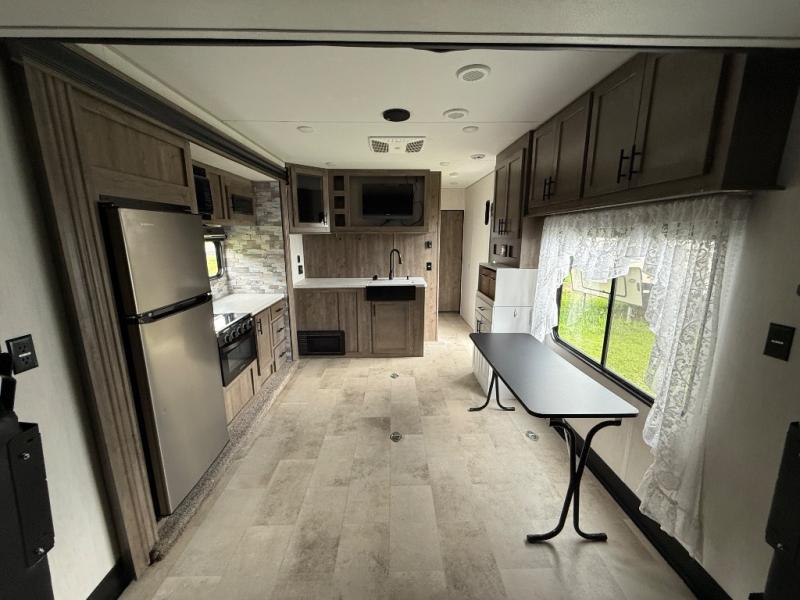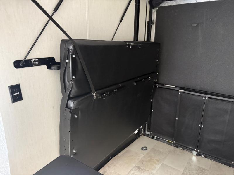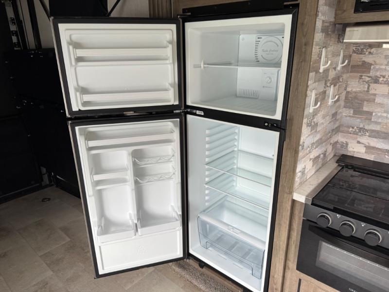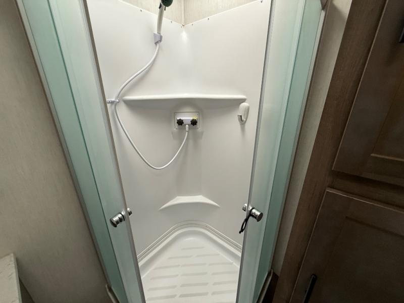 Camping with your favorite ride-on toys is easier than ever in this toy hauler. The 15' total garage space provides tons of space for your gear, plus there is a slide out that will give the chef more room to cook meals. Relax on the roll-overs sofas or add the optional lounge chairs for a more at-home feel. There is plenty of counter space in the kitchen, plus a pantry for snacks or dry goods. You will appreciate the dual entry bath that will give you a private entrance into the front bedroom. Here, you can sleep soundly on the king bed and store your clothes in the dual wardrobes.