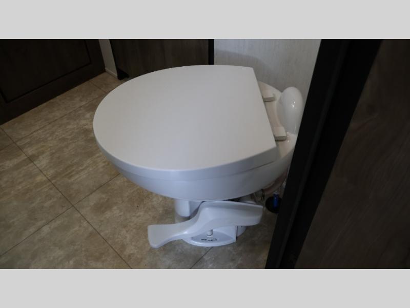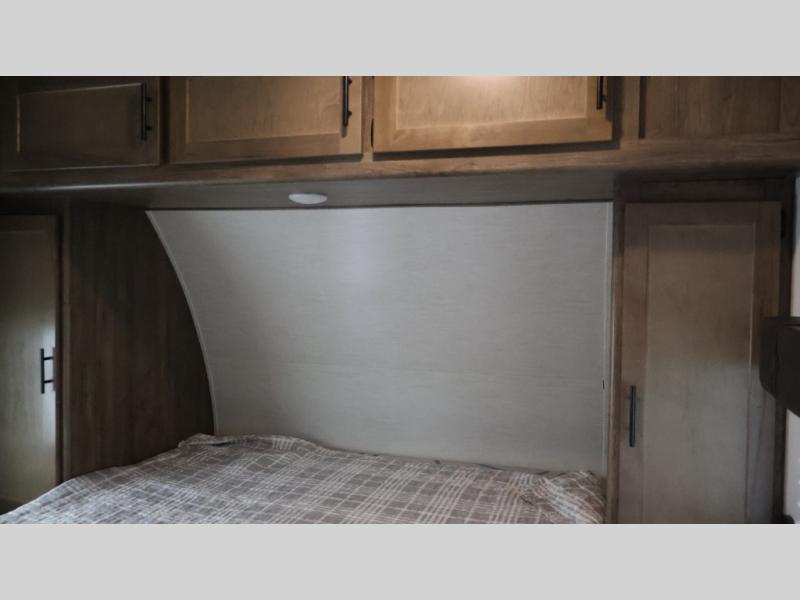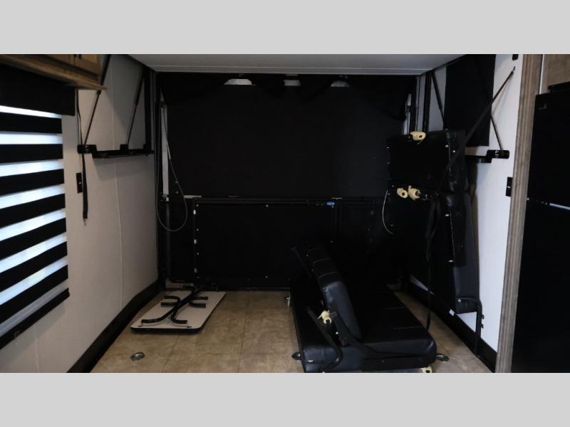 Camping with your favorite ride-on toys is easier than ever in this toy hauler. The 15' total garage space provides tons of space for your gear, plus there is a slide out that will give the chef more room to cook meals. Relax on the roll-overs sofas or add the optional lounge chairs for a more at-home feel. There is plenty of counter space in the kitchen, plus a pantry for snacks or dry goods. You will appreciate the dual entry bath that will give you a private entrance into the front bedroom. Here, you can sleep soundly on the king bed and store your clothes in the dual wardrobes.