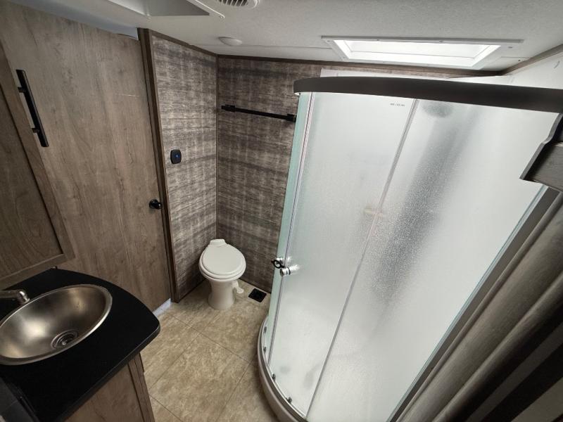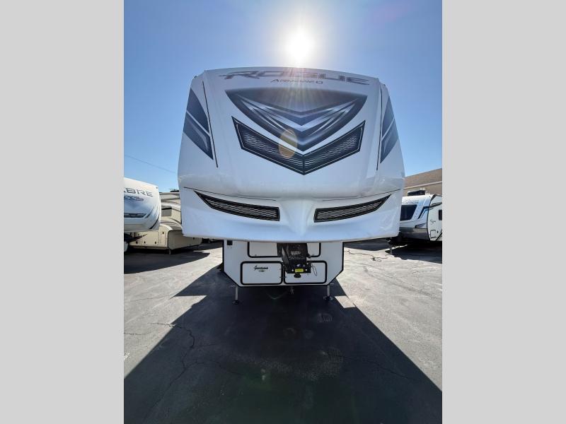 Every one of these Forest River Vengeance Rogue Armored fifth wheel toy haulers come with the features you want most at an affordable price tag! The DUR-A-POXY cargo floor has 5,000 lb. tie downs to ensure your toys will arrive safely without damaging the flooring, plus the 8' ramp door makes it easy to load them. A 15,000 BTU air conditioner will keep you cool even on the hottest summer days. An enclosed and heated underbelly keeps your unit's vitals protected and a central docking station makes life a little easier. The Rogue Armored package comes with a six point leveling system, a comfort plus adjustable powered king bed system, and a ramp door patio system. You can be sure to find one that fits your needs!