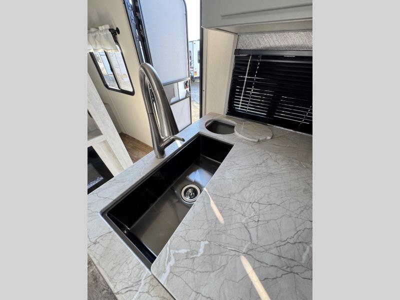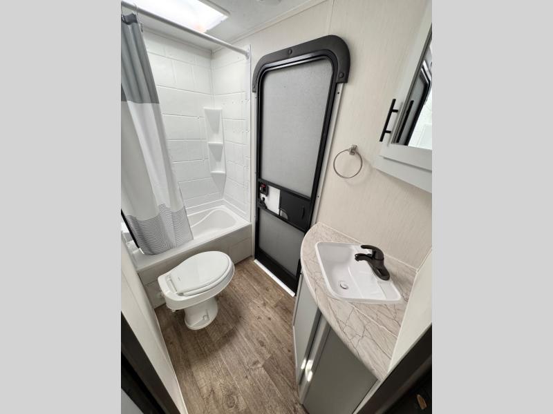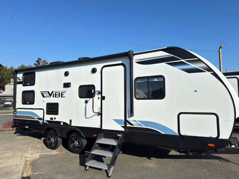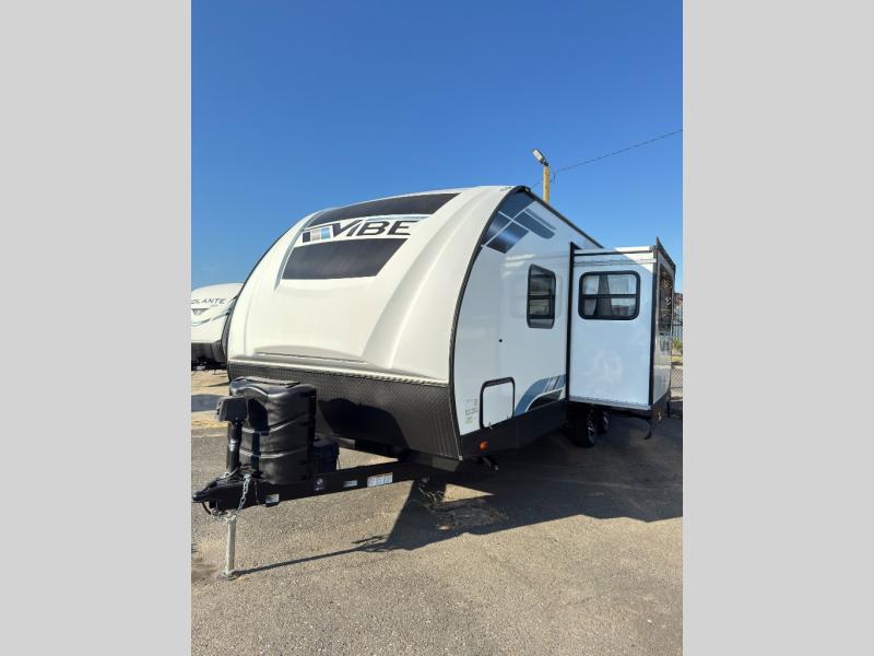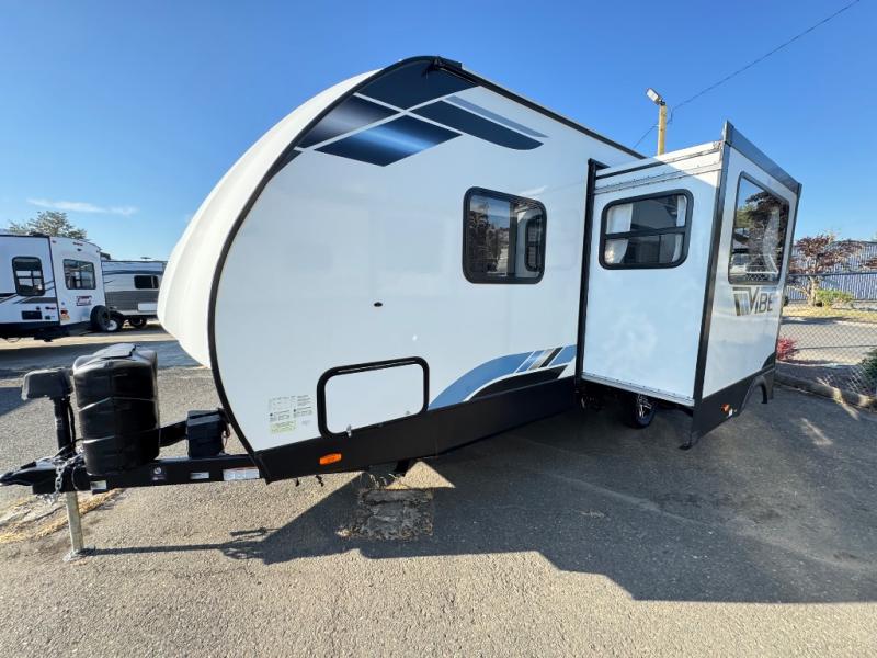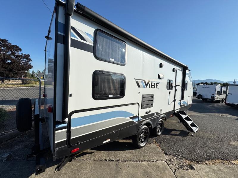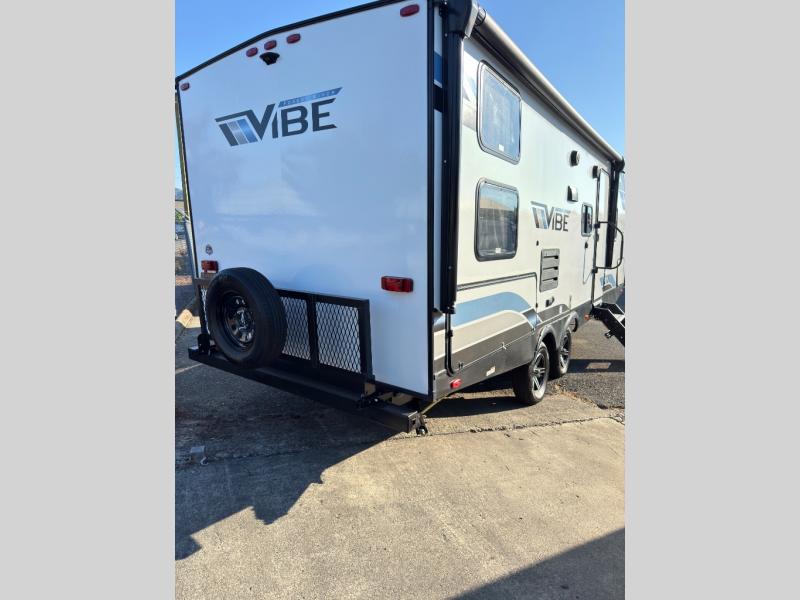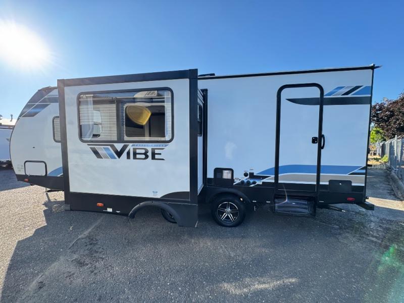 Each Vibe travel trailer by Forest River includes Hyper Lyte construction and a durable laminated "Aluma Frame" for years of use. The heated and enclosed underbelly allows you to extend your camping season, and the LED-lit exterior speakers will keep the party going as you grill outdoors and visit with family. Inside, you'll find LED lights to keep everything bright and open, a Bluetooth stereo, roller shades for your privacy, and many more amenities per region. These models also include cable and satellite prep and a digital TV antenna with a booster so you can stay connected to the outside world if you choose. Make the easy choice and choose a Vibe travel trailer today!