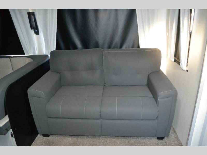 Are you looking to upgrade your RV to a trailer with more space and more features? Look no further than this Vibe that can sleep ten people each night. The kids are sure to claim the double-size bunks to themselves, while the adults take the front private bedroom with the queen bed. You will find even more sleeping space on the U-shaped dinette and sleeper sofa within the large slide out. After a day outdoors at the lake, get cleaned up in the full bath that includes a 40" x 30" walk-in shower and its own exterior entry door for convenience. There is so much more to love about this model, like the fireplace and entertainment center, the oversized panoramic windows, and the large pass-through storage for all your gear!