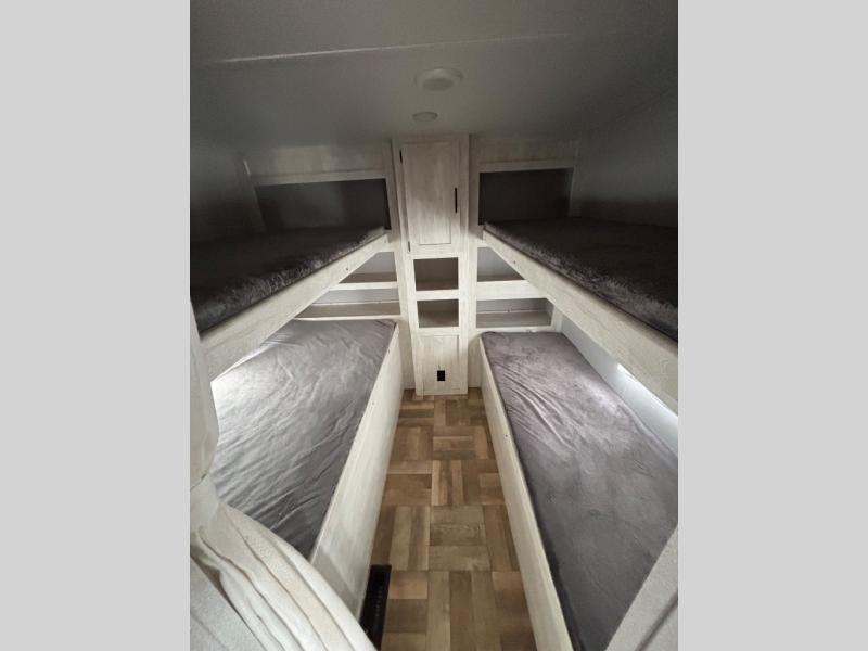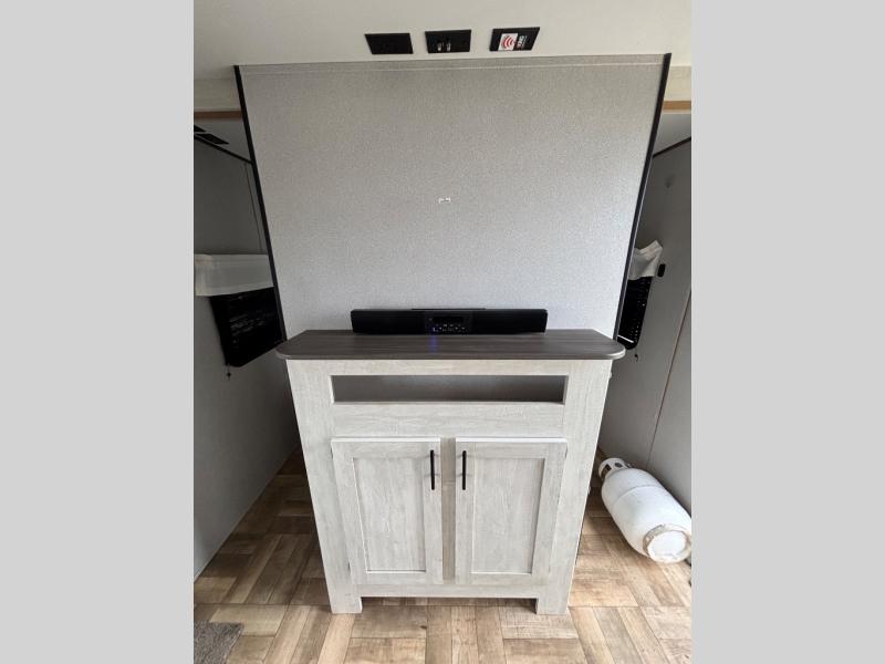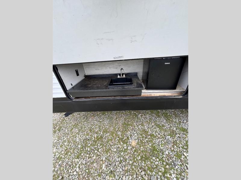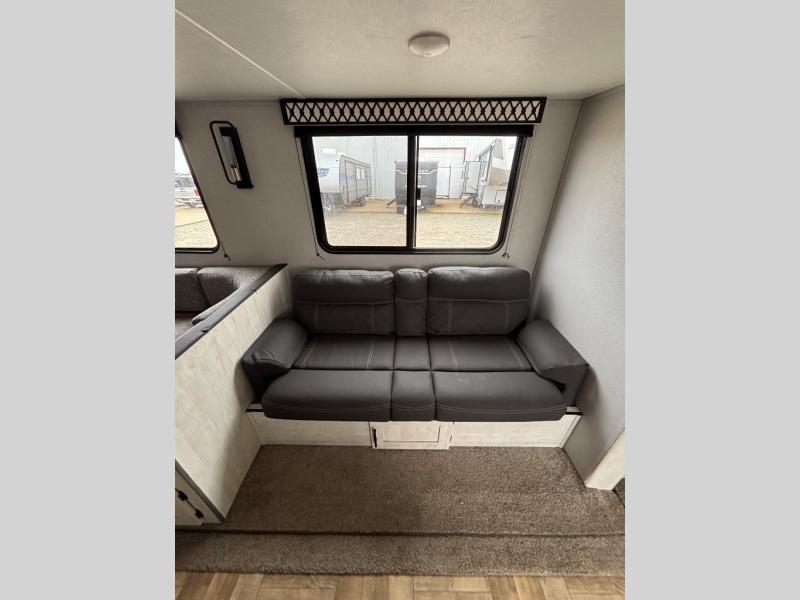 This travel trailer will feel just like home with a private bunkhouse for the kids, and a front master bedroom for mom and dad. The walk-though bath is both spacious and convenient, and the large slide out will provide enough space to let the dog nap on the floor. Play a game around the U-shaped dinette or relax on the sleeper sofa during movie night. The chef of the group can cook indoors or outdoors on the universal outside kitchen. There is even outside TV prep so you can bring your own TV to enjoy the big game outdoors!