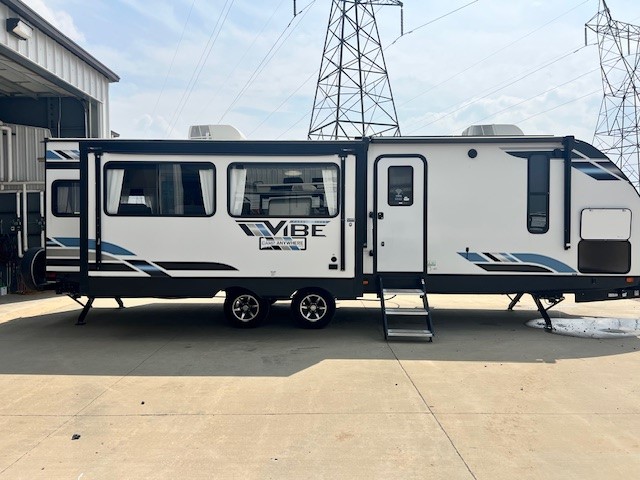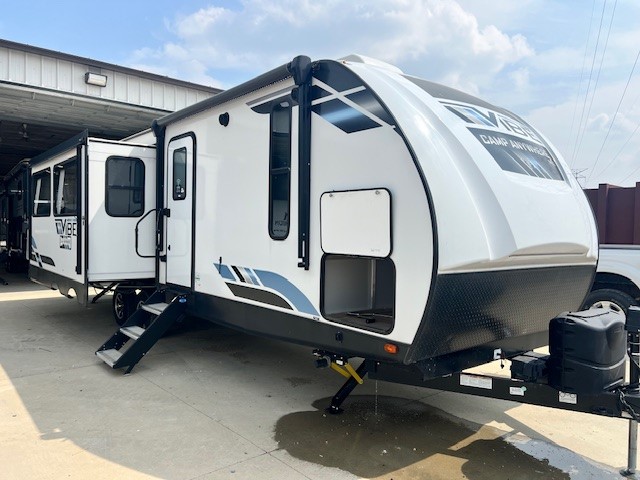 Each Vibe travel trailer by Forest River includes Hyper Lyte construction and a durable laminated "Aluma Frame" for years of use. The heated and enclosed underbelly allows you to extend your camping season, and the LED-lit exterior speakers will keep the party going as you grill outdoors and visit with family. Inside, you'll find LED lights to keep everything bright and open, a Bluetooth stereo, roller shades for your privacy, and many more amenities per region. These models also include cable and satellite prep and a digital TV antenna with a booster so you can stay connected to the outside world if you choose. Make the easy choice and choose a Vibe travel trailer today!