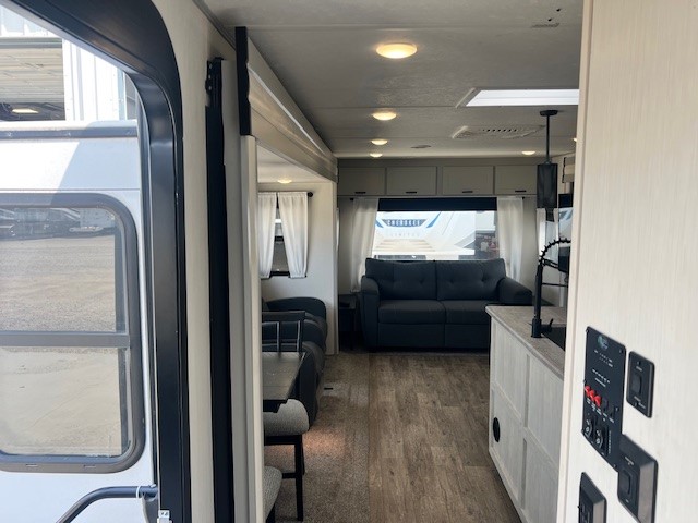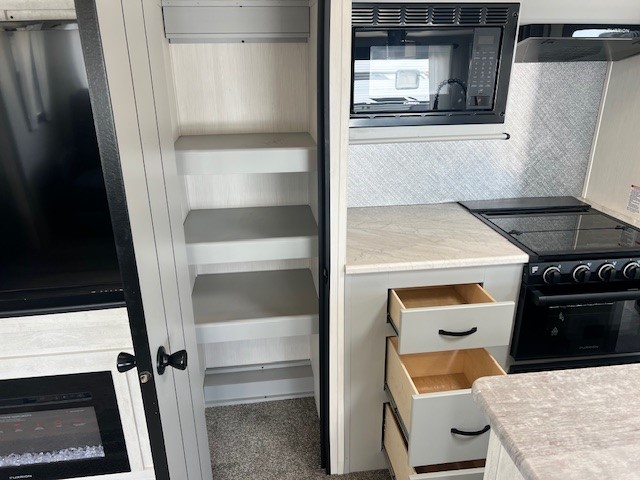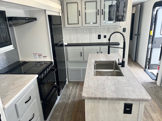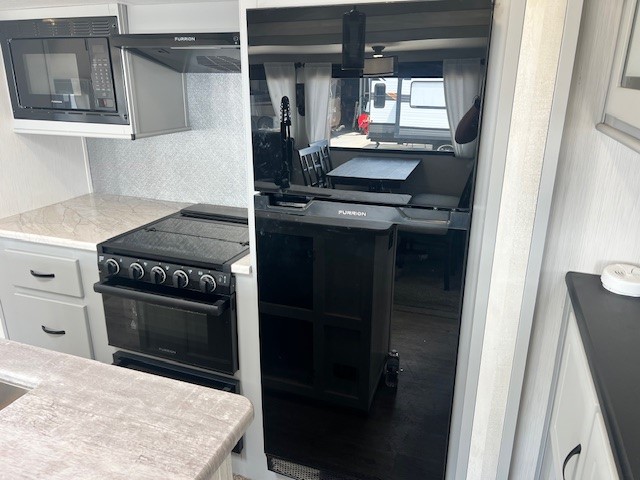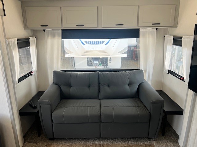 This travel trailer allows you to enjoy the Great Outdoors without having to give up your creature comforts. The dual opposing slides provide the chef space to work around the kitchen island, and there is plenty of seating space for your guests on the dual recliners, the sleeper sofa, and the booth dinette. The fireplace and LCD TV will be perfect for those rainy days, and there is even a living area skylight to let natural light in. This model also includes Sure-Step entry steps, a large pass-through storage, plus two power awnings with LED lights so you can spend more time outdoors with friends and family!