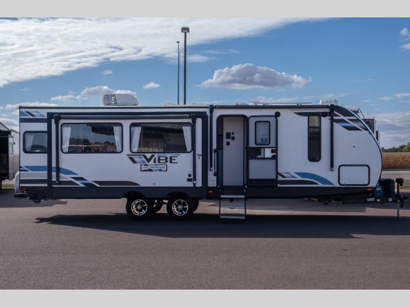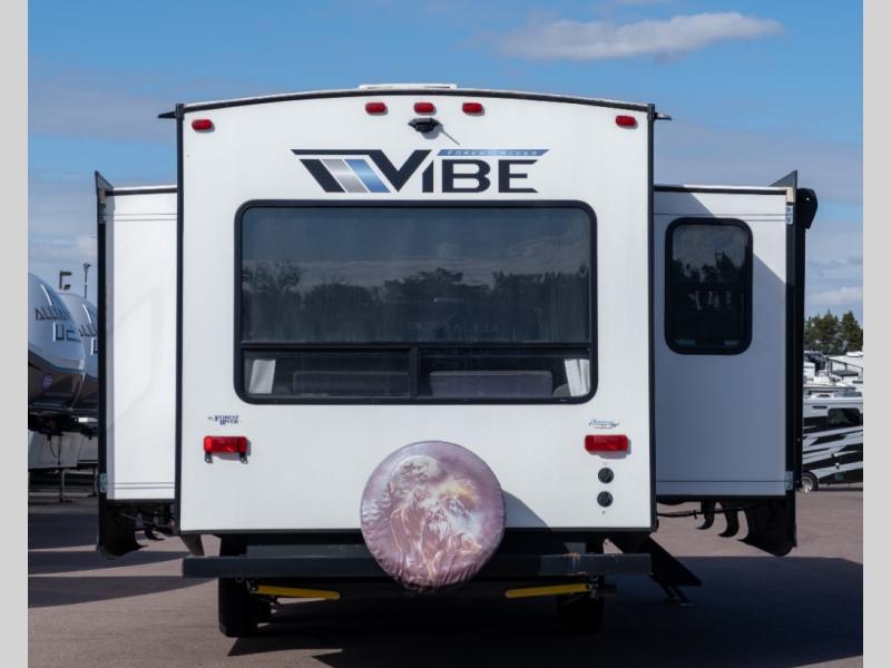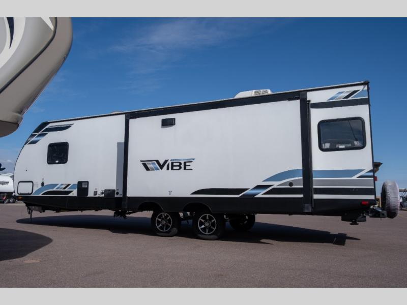 Each Vibe travel trailer by Forest River includes Hyper Lyte construction and a durable laminated "Aluma Frame" for years of use. The heated and enclosed underbelly allows you to extend your camping season, and the LED-lit exterior speakers will keep the party going as you grill outdoors and visit with family. Inside, you'll find LED lights to keep everything bright and open, a Bluetooth stereo, roller shades for your privacy, and many more amenities per region. These models also include cable and satellite prep and a digital TV antenna with a booster so you can stay connected to the outside world if you choose. Make the easy choice and choose a Vibe travel trailer today!