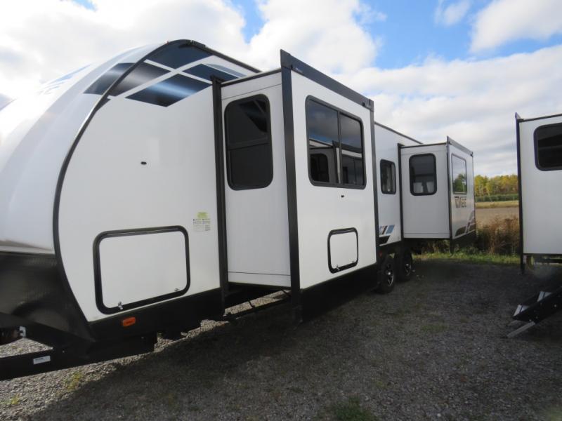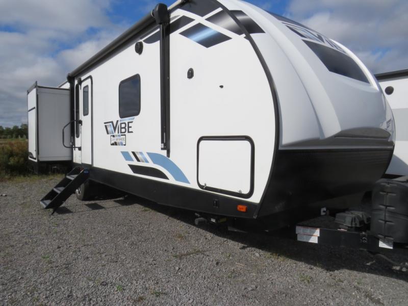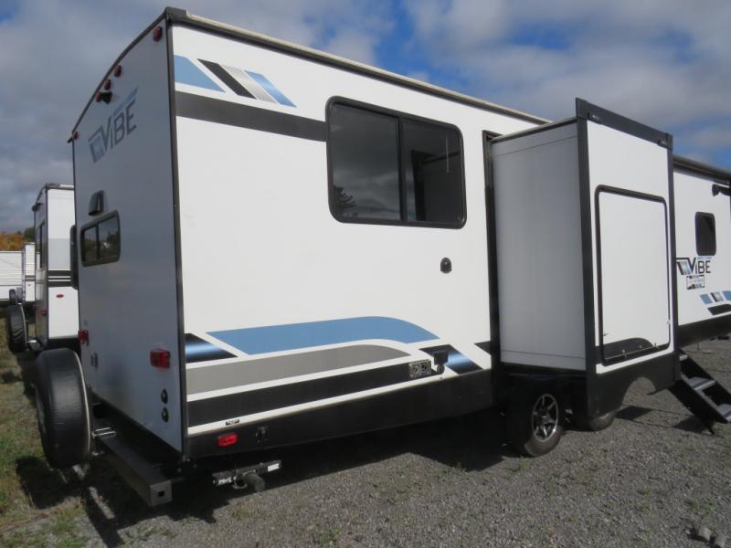 Each Vibe travel trailer by Forest River includes Hyper Lyte construction and a durable laminated "Aluma Frame" for years of use. The heated and enclosed underbelly allows you to extend your camping season, and the LED-lit exterior speakers will keep the party going as you grill outdoors and visit with family. Inside, you'll find LED lights to keep everything bright and open, a Bluetooth stereo, roller shades for your privacy, and many more amenities per region. These models also include cable and satellite prep and a digital TV antenna with a booster so you can stay connected to the outside world if you choose. Make the easy choice and choose a Vibe travel trailer today!