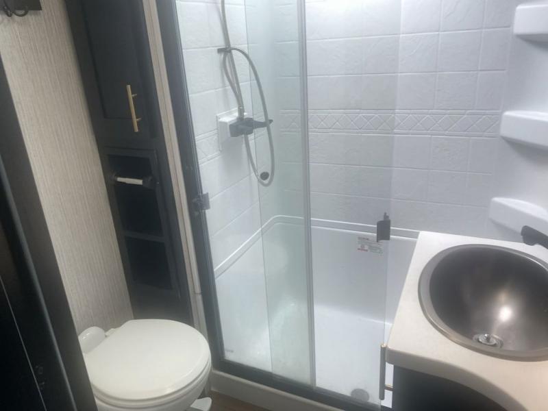 With any Wildcat fifth wheel or travel trailer by Forest River you will appreciate durable construction, including a Maxx strong laminated aluminum floor on the travel trailers, and underbelly armor on the fifth wheels. The Maxx insulation package includes high-density block foam insulation, two 30 lb. LP tanks, and a 35,000 BTU furnace to keep you comfortable year around. Some of the interior comforts you are sure to appreciate are the bedroom reading lights on both sides of the bed, the foot pedal flush toilet in the bath, the Rose Gold door and drawer hardware, and more!