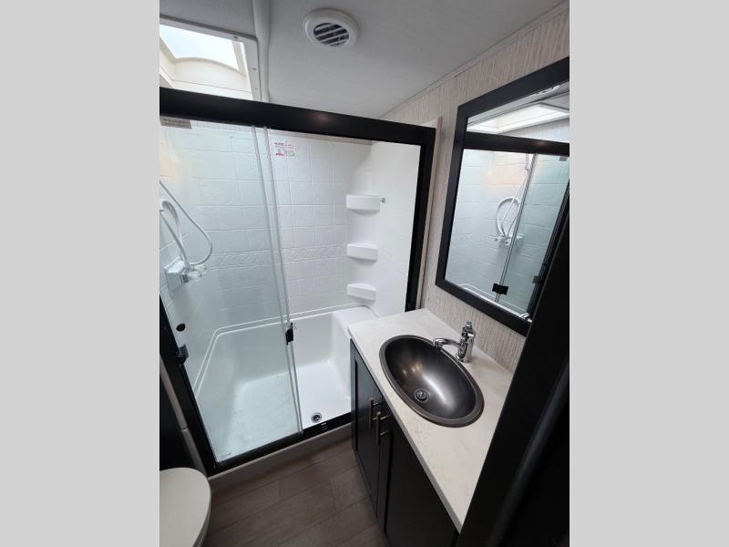 With any Wildcat fifth wheel or travel trailer by Forest River you will appreciate durable construction, including a Maxx strong laminated aluminum floor on the travel trailers, and underbelly armor on the fifth wheels. The Maxx insulation package includes high-density block foam insulation, two 30 lb. LP tanks, and a 35,000 BTU furnace to keep you comfortable year around. Some of the interior comforts you are sure to appreciate are the bedroom reading lights on both sides of the bed, the foot pedal flush toilet in the bath, the Rose Gold door and drawer hardware, and more!