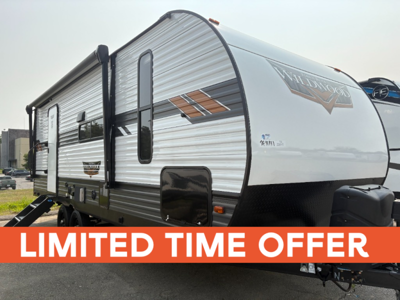 Forest River offers you the highest quality and the best components in its Wildwood travel trailer! The fully walkable one-piece roof is ultra reliable, and the rest of the construction is just as dependable with the powder-coated I-beam frame, cambered chassis, R-7 fiberglass insulation, nitrogen-filled tires, and triple-seal slide-out system. The Wildwood is not only full of quality, but it is also full of style with its herringbone luxury vinyl flooring, upgraded designer furniture, high-gloss exterior metal, and seamless countertops. The Wildwood also comes with some extra features that will make your life more comfortable, like the exterior speakers with blue LED light, the tablet-compatible USB ports, the residential vanity with shower caddy, and true stabilizer jacks with JT's Strong Arm.