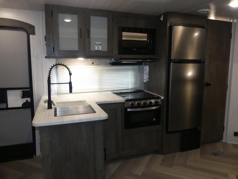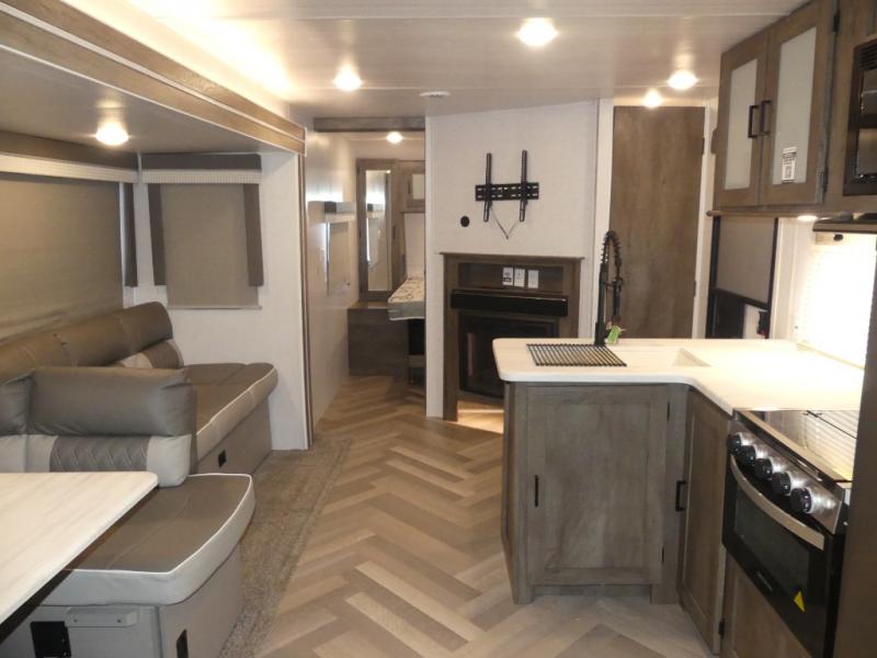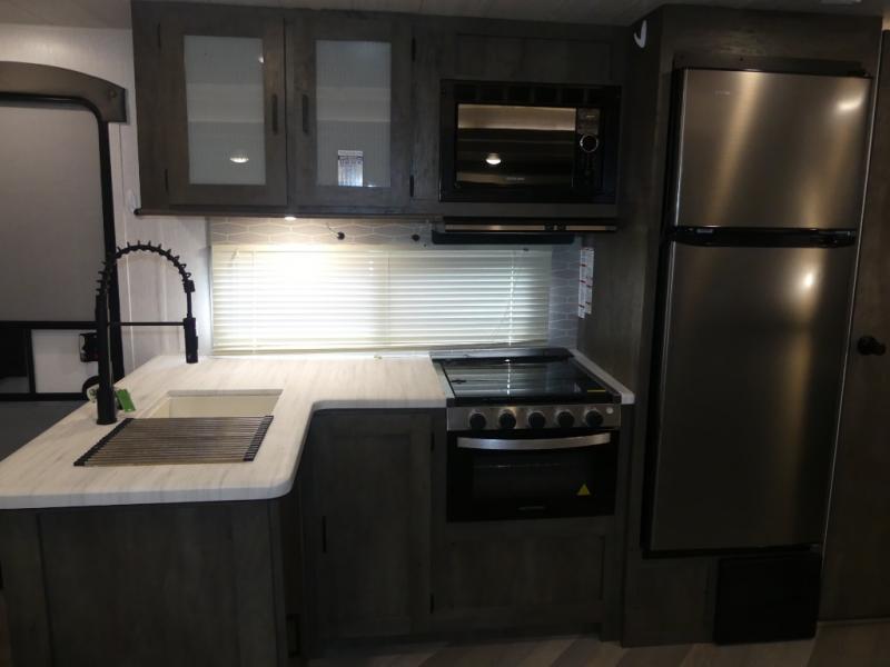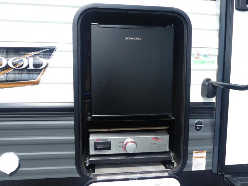 Forest River offers you the highest quality and the best components in its Wildwood travel trailer! The fully walkable one-piece roof is ultra reliable, and the rest of the construction is just as dependable with the powder-coated I-beam frame, cambered chassis, R-7 fiberglass insulation, nitrogen-filled tires, and triple-seal slide-out system. The Wildwood is not only full of quality, but it is also full of style with its herringbone luxury vinyl flooring, upgraded designer furniture, high-gloss exterior metal, and seamless countertops. The Wildwood also comes with some extra features that will make your life more comfortable, like the exterior speakers with blue LED light, the tablet-compatible USB ports, the residential vanity with shower caddy, and true stabilizer jacks with JT's Strong Arm.