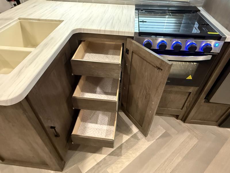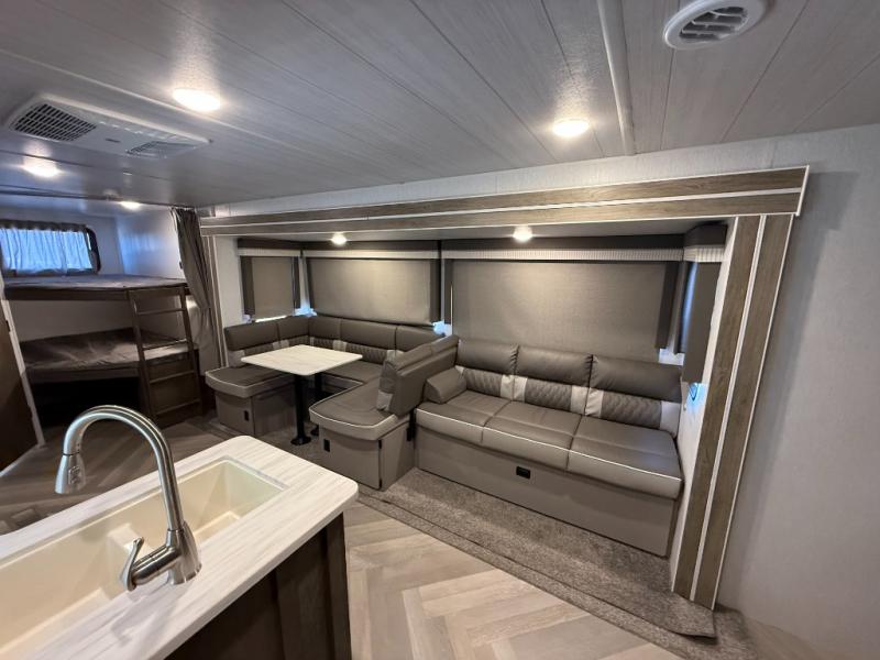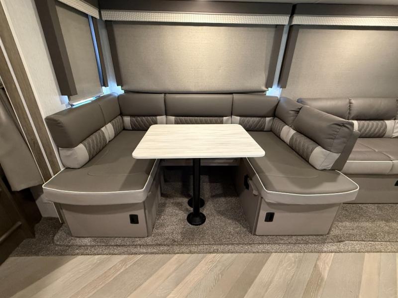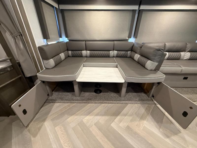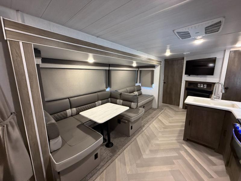 Versa-Lounge in the main slide-out (a combination of U-shaped dinette + sofa) that provides more flexible seating & sleeping arrangements.