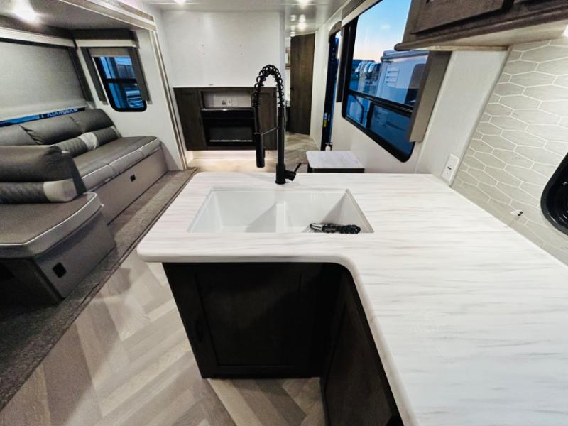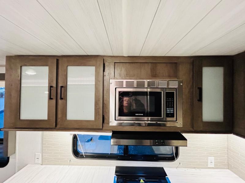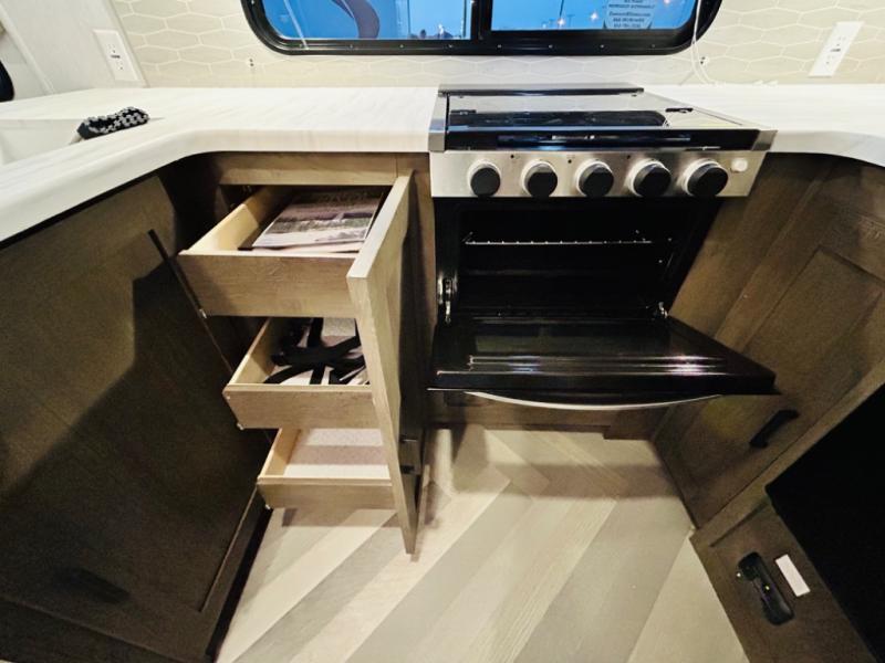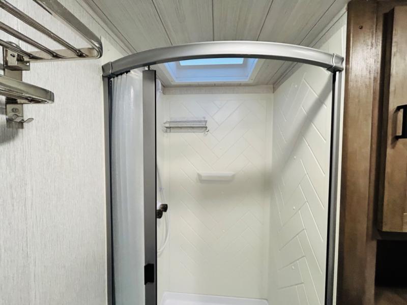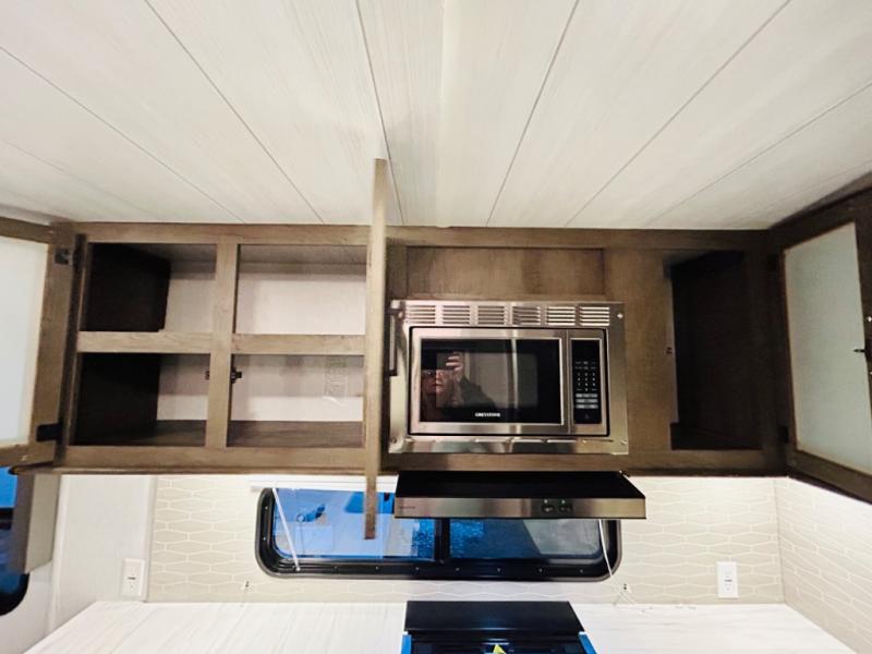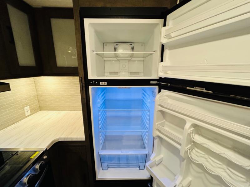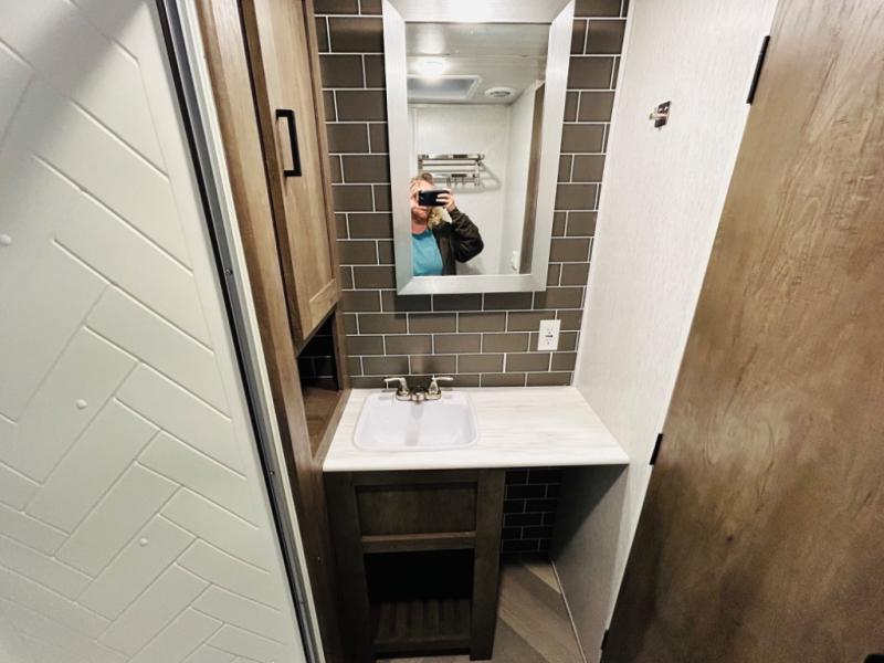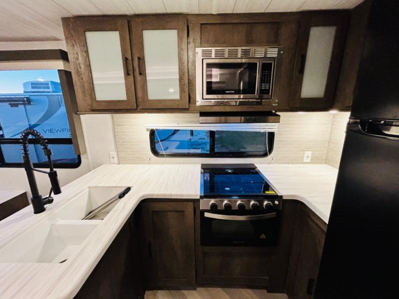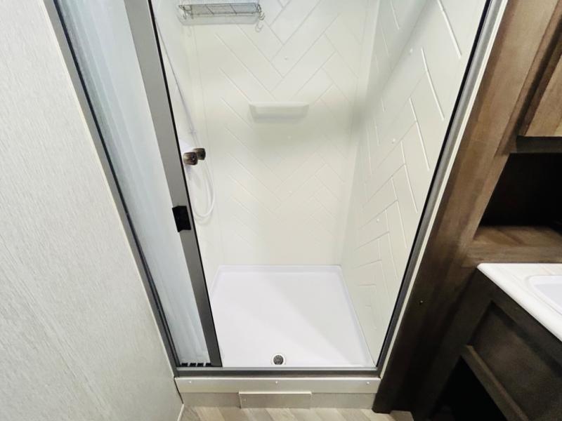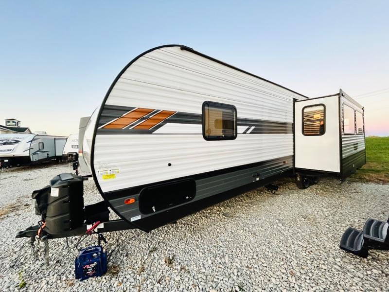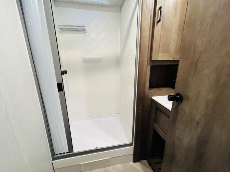 Forest River offers you the highest quality and the best components in its Wildwood travel trailer! The fully walkable one-piece roof is ultra reliable, and the rest of the construction is just as dependable with the powder-coated I-beam frame, cambered chassis, R-7 fiberglass insulation, nitrogen-filled tires, and triple-seal slide-out system. The Wildwood is not only full of quality, but it is also full of style with its herringbone luxury vinyl flooring, upgraded designer furniture, high-gloss exterior metal, and seamless countertops. The Wildwood also comes with some extra features that will make your life more comfortable, like the exterior speakers with blue LED light, the tablet-compatible USB ports, the residential vanity with shower caddy, and true stabilizer jacks with JT's Strong Arm.