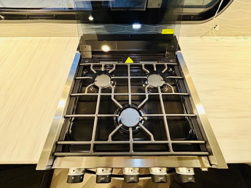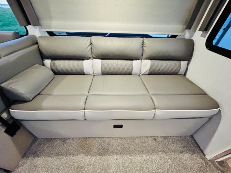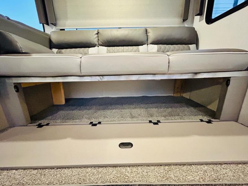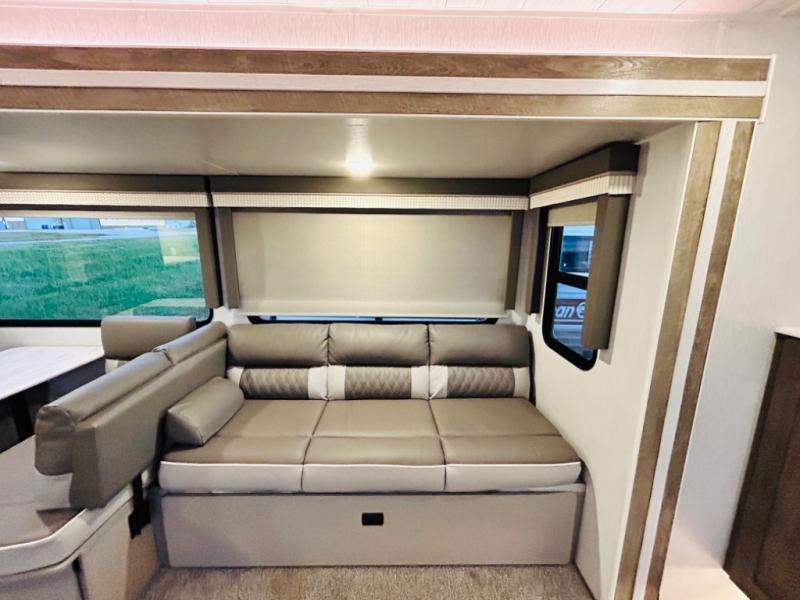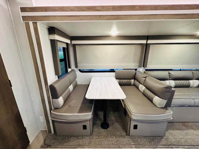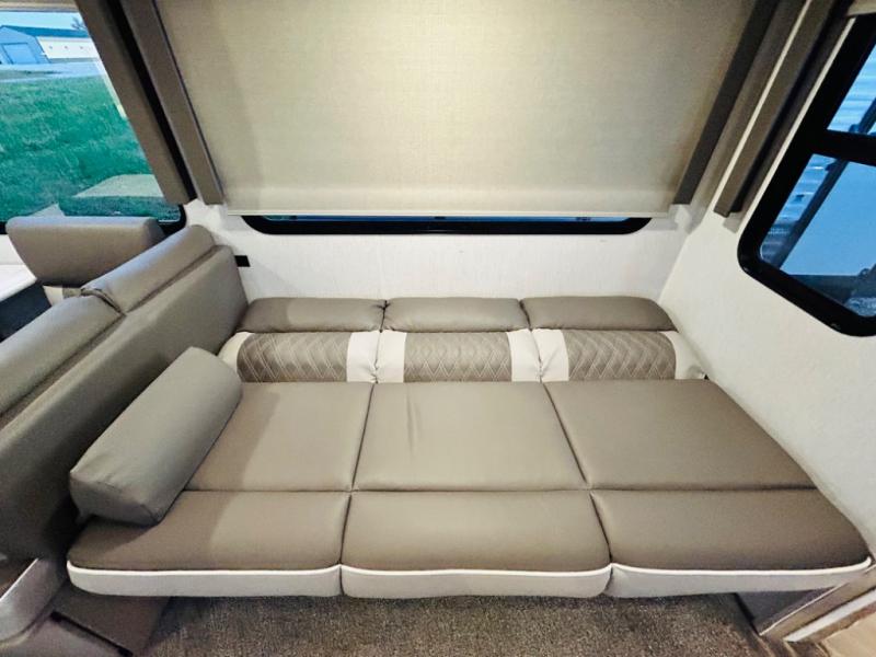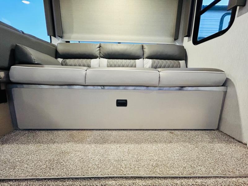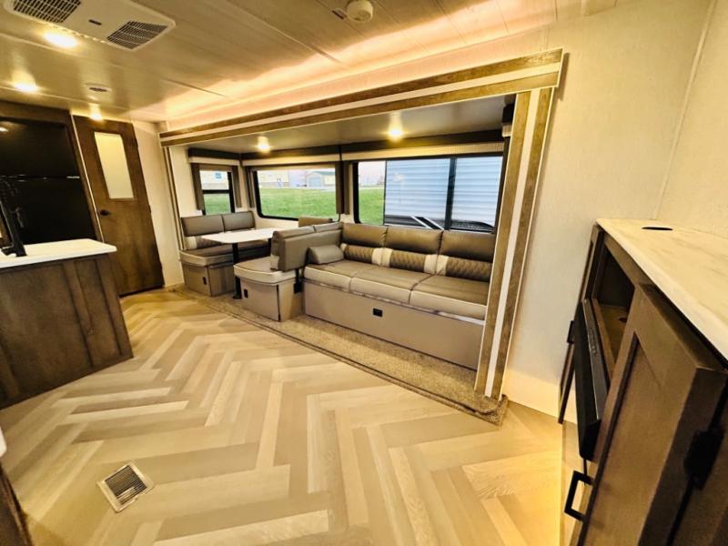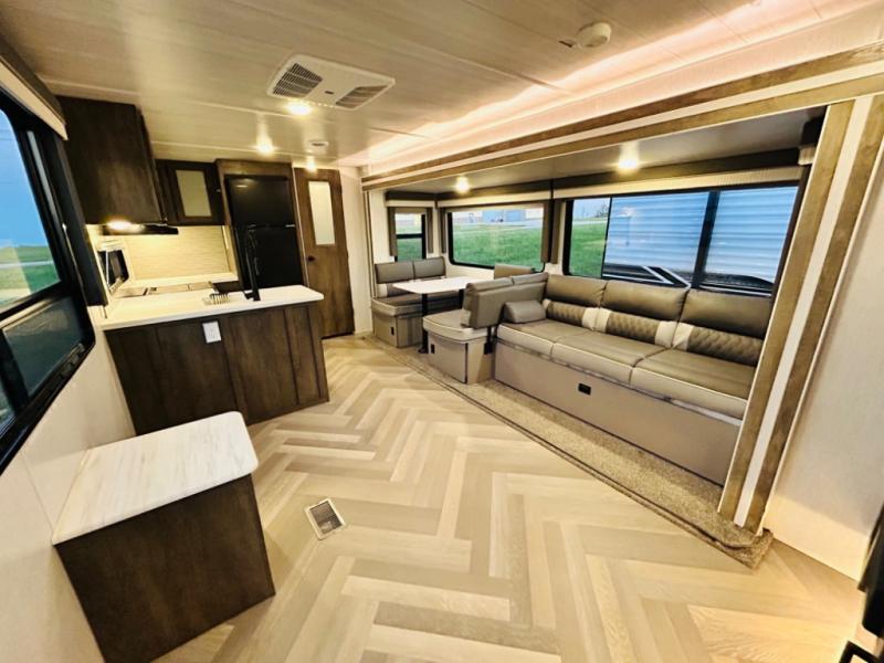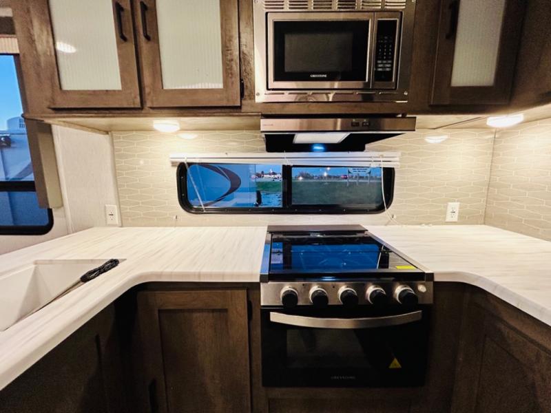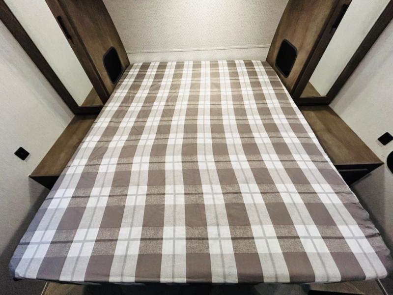 This Wildwood travel trailer is perfect for your family of five looking for a new adventure. You will enjoy the rear kitchen that includes an oversized refrigerator and a three-burner cooktop. The booth dinette within the slide out is perfect for enjoying meals, and when you're through, you can relax on the sofa. Both of these pieces of furniture are a part of the Versa Lounge which allows you to customize their function by moving the middle section to create a larger sofa or a larger dinette. This unit also includes two lounge chairs, so you'll feel right at home! You'll love the full bath in this unit, and the queen bed in the private bedroom is perfect for a good night's rest.