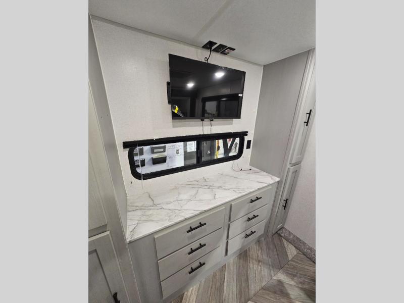 The Forest River Wildwood FSX travel trailer and toy haulers are easy to tow and easy to love, so come take a look! With each model you'll appreciate the 20K BTU furnace and 13,500 BTU A/C to keep you comfortable year around, and the large windows will make the whole unit seem bright and open. The EZ entrance includes an XL folding grab assist handle, and the power awning with LED lights provide an outdoor living space you are sure to love. The lightweight Wildwood FSX travel trailers and toy haulers are your ticket to the great outdoors. Choose yours today!