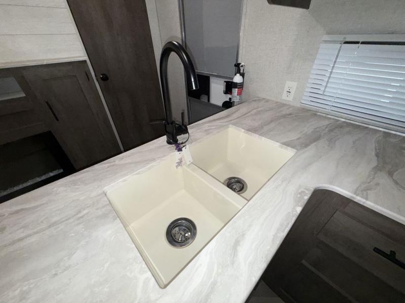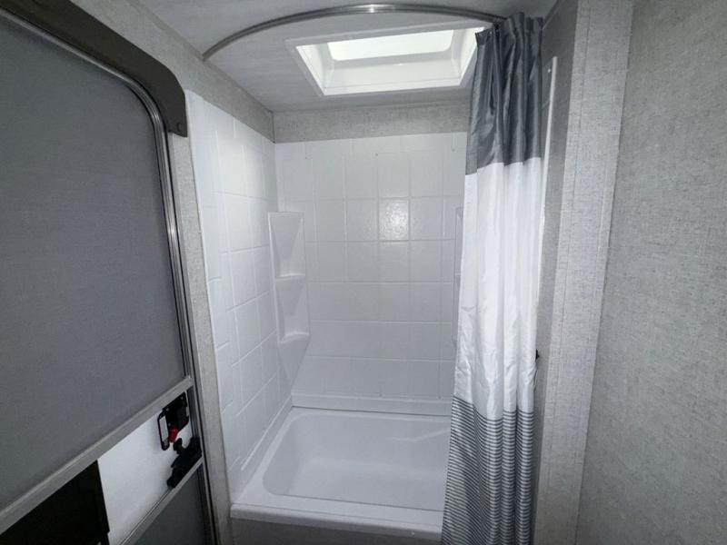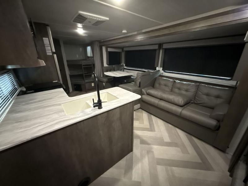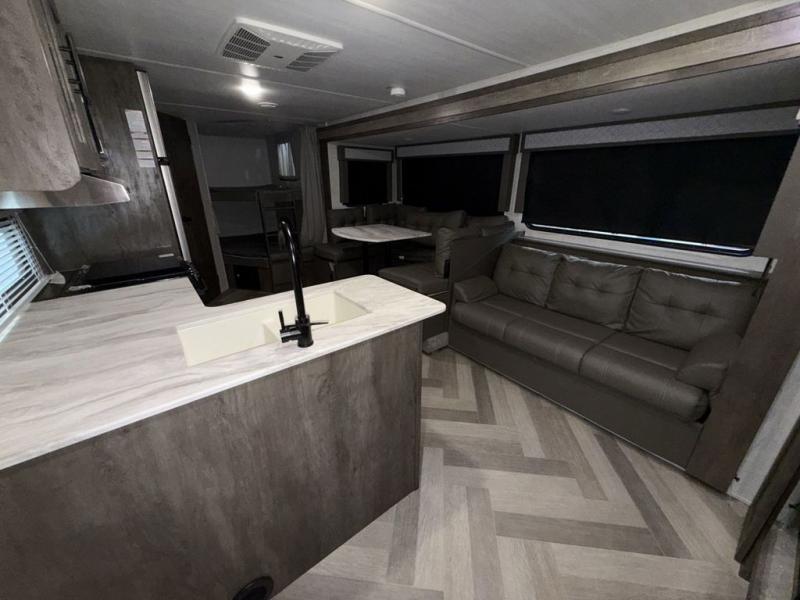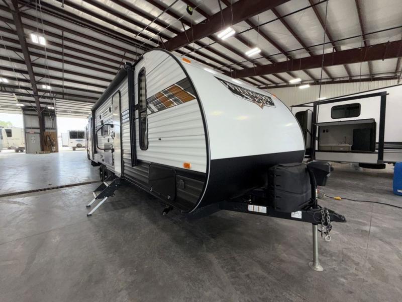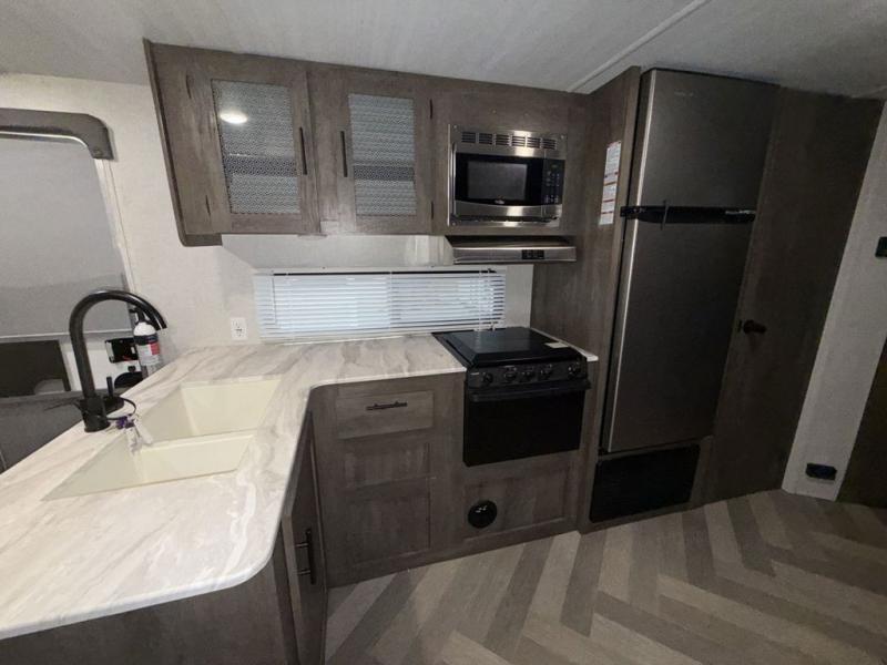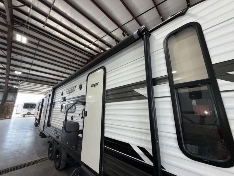 The Forest River Wildwood FSX travel trailer and toy haulers are easy to tow and easy to love, so come take a look! With each model you'll appreciate the 20K BTU furnace and 13,500 BTU A/C to keep you comfortable year around, and the large windows will make the whole unit seem bright and open. The EZ entrance includes an XL folding grab assist handle, and the power awning with LED lights provide an outdoor living space you are sure to love. The lightweight Wildwood FSX travel trailers and toy haulers are your ticket to the great outdoors. Choose yours today!