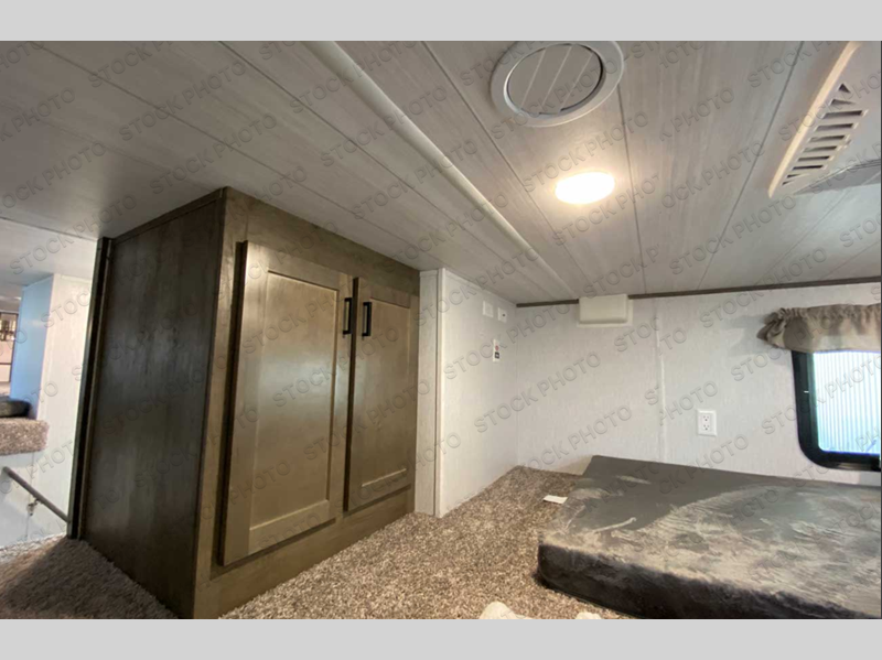 Let all of your cares go free with this Wildwood Grand Lodge destination trailer! Forget about trying to squish your family into one tiny unit because this trailer gives you space to spread out and enjoy yourself. In the central portion of this trailer, you will find a living area that has opposing sofa slides, an entertainment center, a fireplace, and even a ceiling fan. While the chef of the family is preparing dinner in the separate front kitchen, you can sit down at the free-standing table with chairs to chat with them. To keep your kids from running around on the main level while you are getting dinner ready, you can send them upstairs to the double loft where they can work on puzzles and games. They will find four bunk mats and storage, and you can sleep in your own custom king bed in privacy in the rear bedroom with the option to add a washer/dryer if you like.