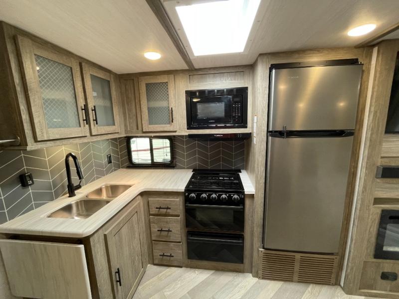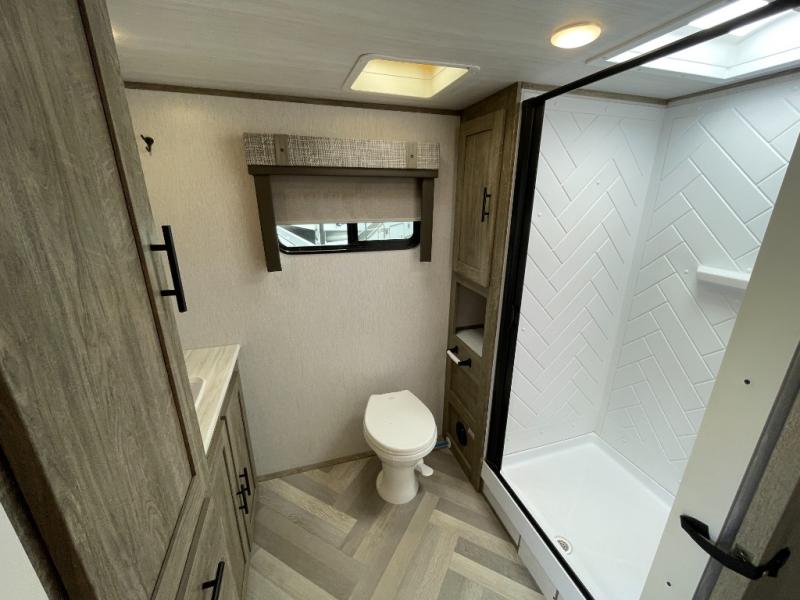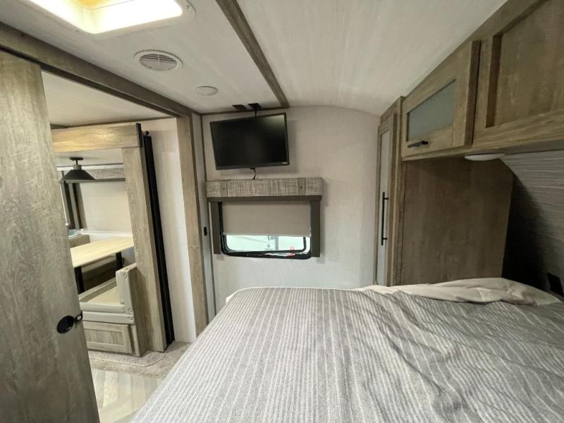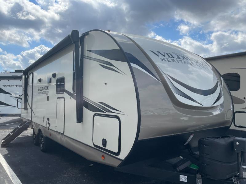 The pre-owned 2022 Forest River Wildwood Heritage Glen Hyper-Lyte 25RBHL offers a lightweight design, residential comfort, and premium construction ideal for couples or small families. This travel trailer blends modern styling with practical features, making it a standout option for travelers seeking quality and value in a pre-owned RV.