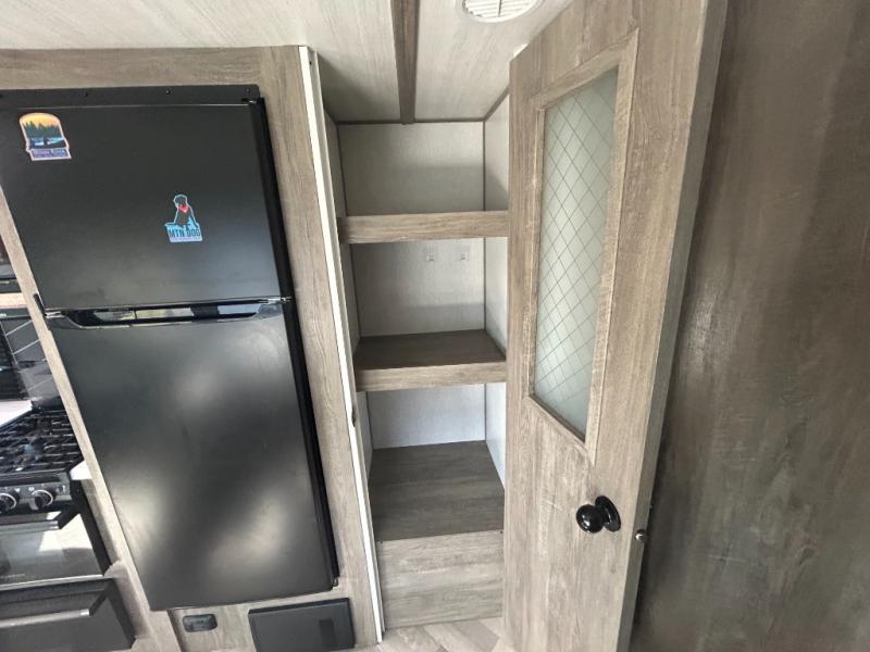 The Wildwood Heritage Glen Hyper-Lyte travel trailer by Forest River offers stability with a wide stance axle system, easy setup with a power tongue jack with LED docking light, and safe entry with the Step Above aluminum entry steps plus the XL Lend-a-Hand entry grab handle to the main entrance. The XL Max-Tint panoramic window(s) in the main slide bring the outside inside, plus the kitchen offers a recessed glass stove top cover, a Midnight glass range hood and microwave, plus more. You will also find a back-up camera and roof-mounted solar panel prep. There is so much more to love about these travel trailers, choose your favorite today!