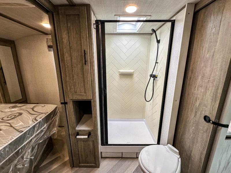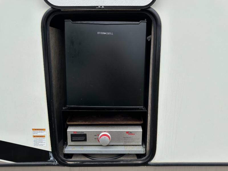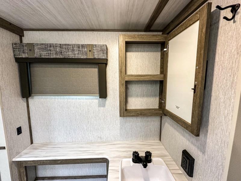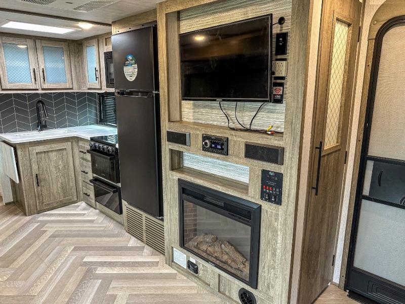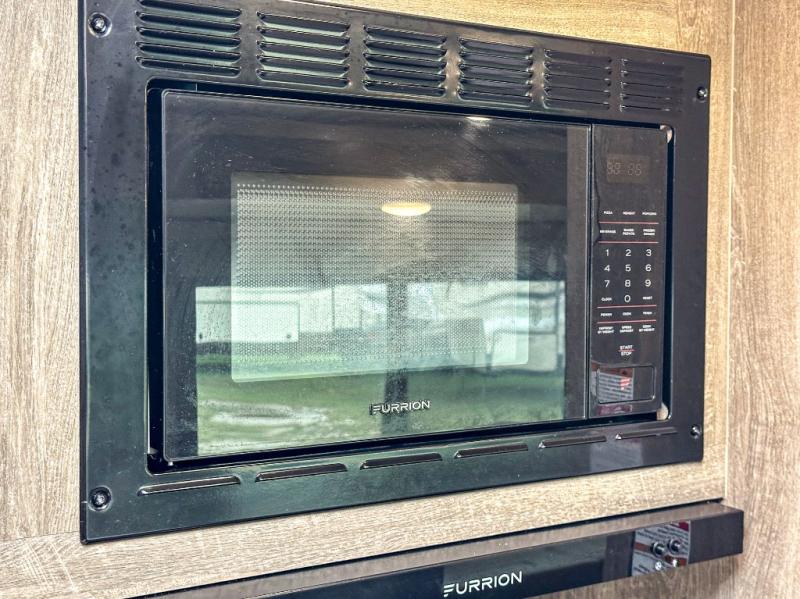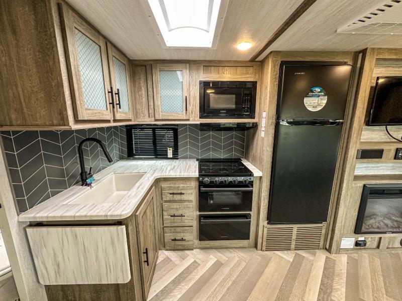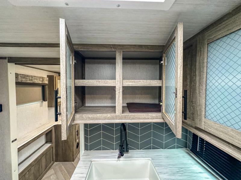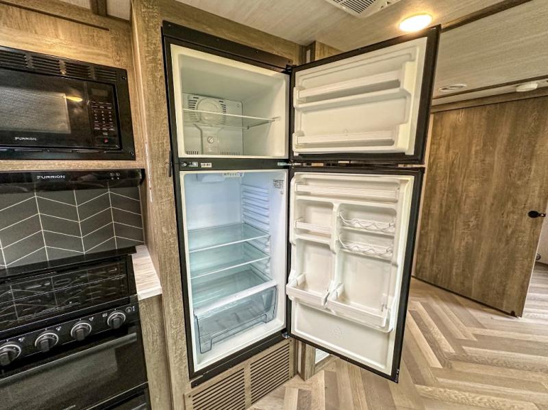 The Wildwood Heritage Glen Hyper-Lyte travel trailer by Forest River offers stability with a wide stance axle system, easy setup with a power tongue jack with LED docking light, and safe entry with the Step Above aluminum entry steps plus the XL Lend-a-Hand entry grab handle to the main entrance. The XL Max-Tint panoramic window(s) in the main slide bring the outside inside, plus the kitchen offers a recessed glass stove top cover, a Midnight glass range hood and microwave, plus more. You will also find a back-up camera and roof-mounted solar panel prep. There is so much more to love about these travel trailers, choose your favorite today!