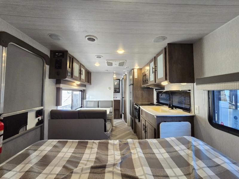 The Forest River Wildwood X-Lite travel trailers are comfortable enough to make any destination feel like home! The Wildwood X-Lite has a one-piece SuperFlex roof, a powder-coated I-beam frame, nitrogen-filled tires, a triple-seal slide system, and a cambered chassis as the base for all of its luxurious additions. Within the reliable construction, you will find excellent interior amenities, like a herringbone luxury vinyl flooring, a shiplap wall board, a huge kitchen window, USB ports, a Bluetooth stereo, and upgraded designer furniture. The Wildwood X-Lite also comes with a pass-through storage compartment so that you can make the most of every adventure by bringing along the essentials.