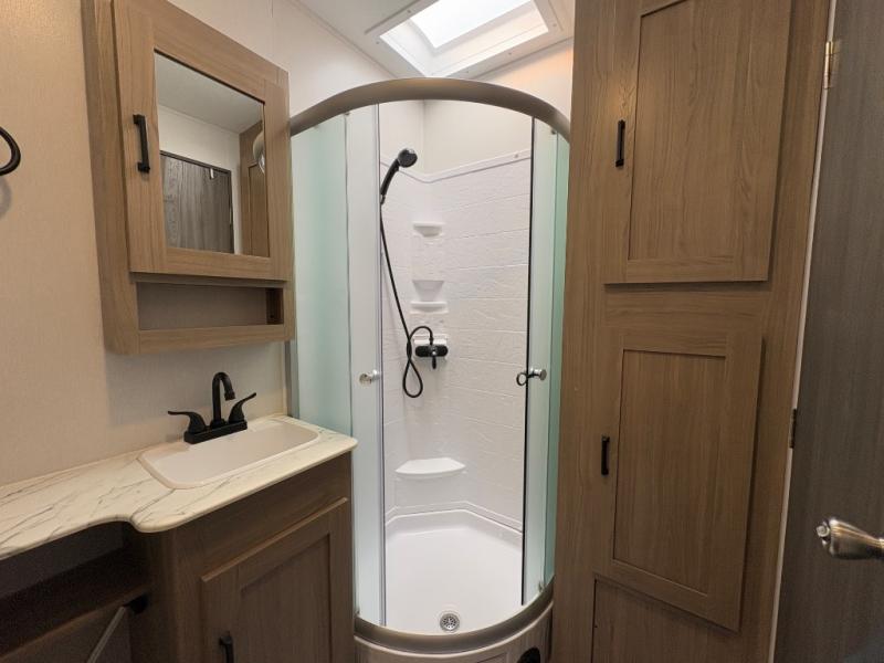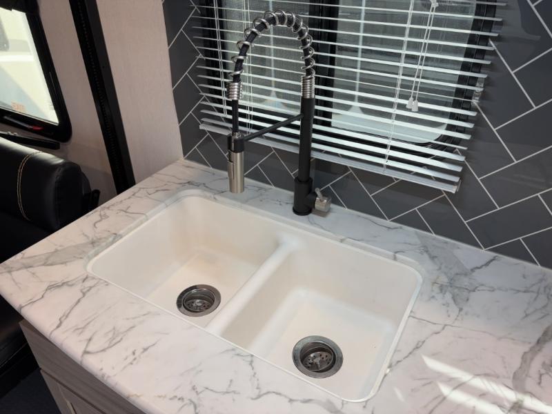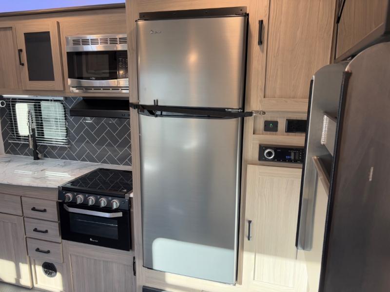 Each Work and Play toy hauler by Forest River is built tough with a mega rail powder coated chassis, a one-piece Tufflex PVC roof membrane, and a fiberglass front cap with rock guard. Towing is made hassle-free with the heavy duty Dexter axles with Nev-R-Adjust brakes and nitrogen filled tires. You will find many convenient features, such as a Winegard Air 360 and TV antenna, an outside spray port, and magnetic compartment door catches to store your riding gear. These toy haulers also include shaker style cabinets and doors, a residential bedspread, multiple USB ports for all your electronics, and many more amenities!